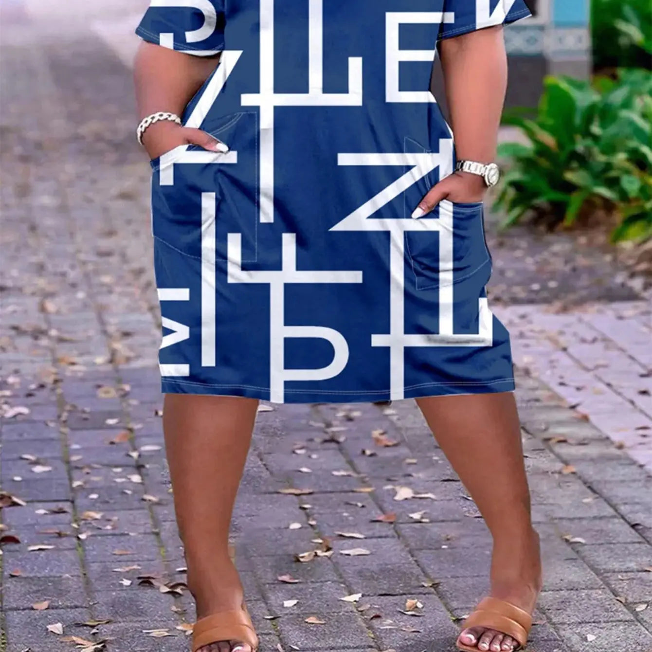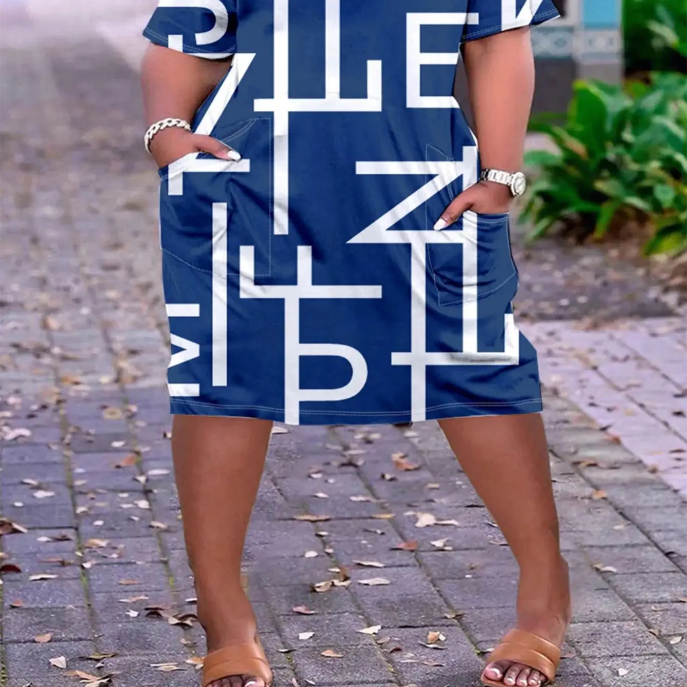 Fashionable slim large size women's geometric letter printed shorts loose and comfortable V-neck dress pencil skirt