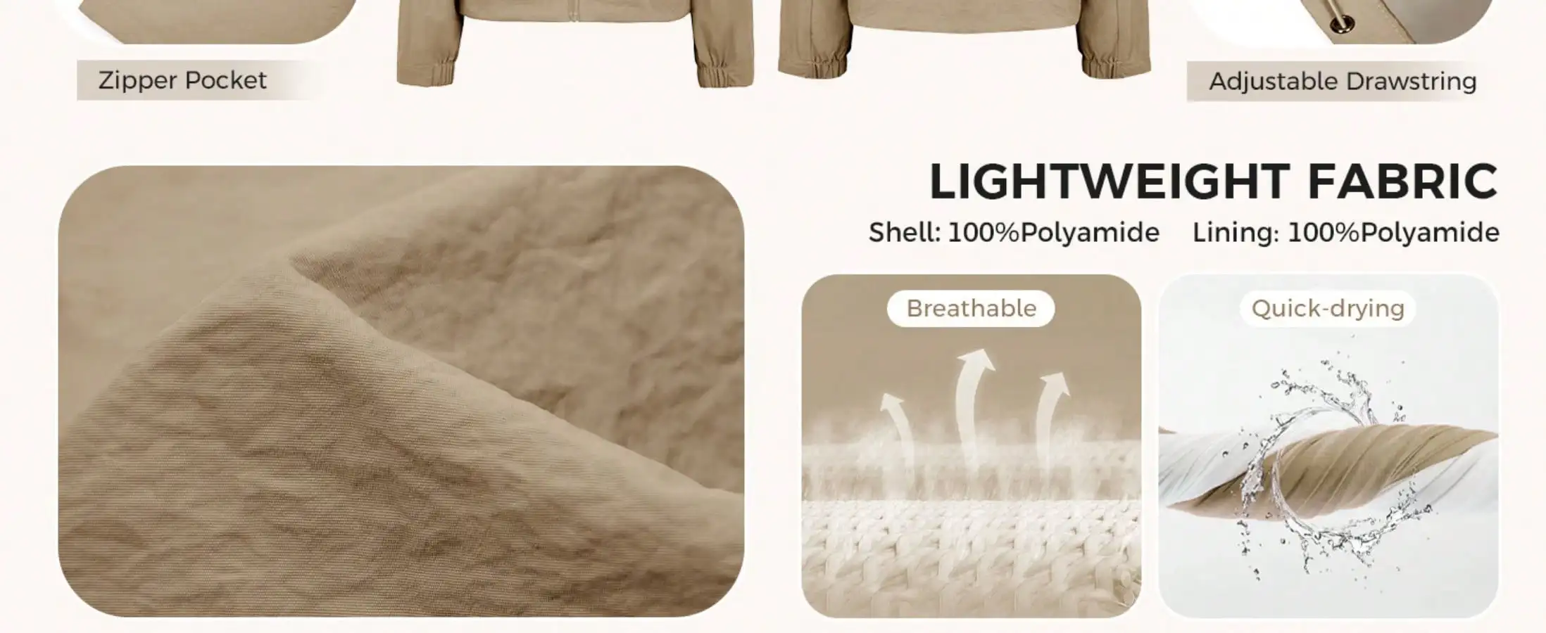 Lightweight Windproof: Women short trench coat is designed with a lightweight, windproof fabric that keeps you comfortable and protected during outdoor activities. The stand collar and hood provide additional coverage against the elements Design: Made with high-quality materials, this fall jacket is built to last. Zippered exterior pockets. Interior pockets hold the essentials. hooded. Cinchable hem. Back vent strategically placed to provide airflow Multi-Functional Pockets: Equipped with multiple pockets, this active jackets offers convenient storage for your essentials, designed to keep your belongings secure and easily accessible Versatile Occasion: With a modern and stylish design, this cropped jacket is perfect for daily wear, running, workout, golfing, hiking, biking, climbing, jogging, fitness or outdoor activities Well Match: Pair with jeans, pants, leggings, sneakers for a casual look. Spring, summer, autumn and winter can also be worn as a light coat, which is a relaxed fashion style