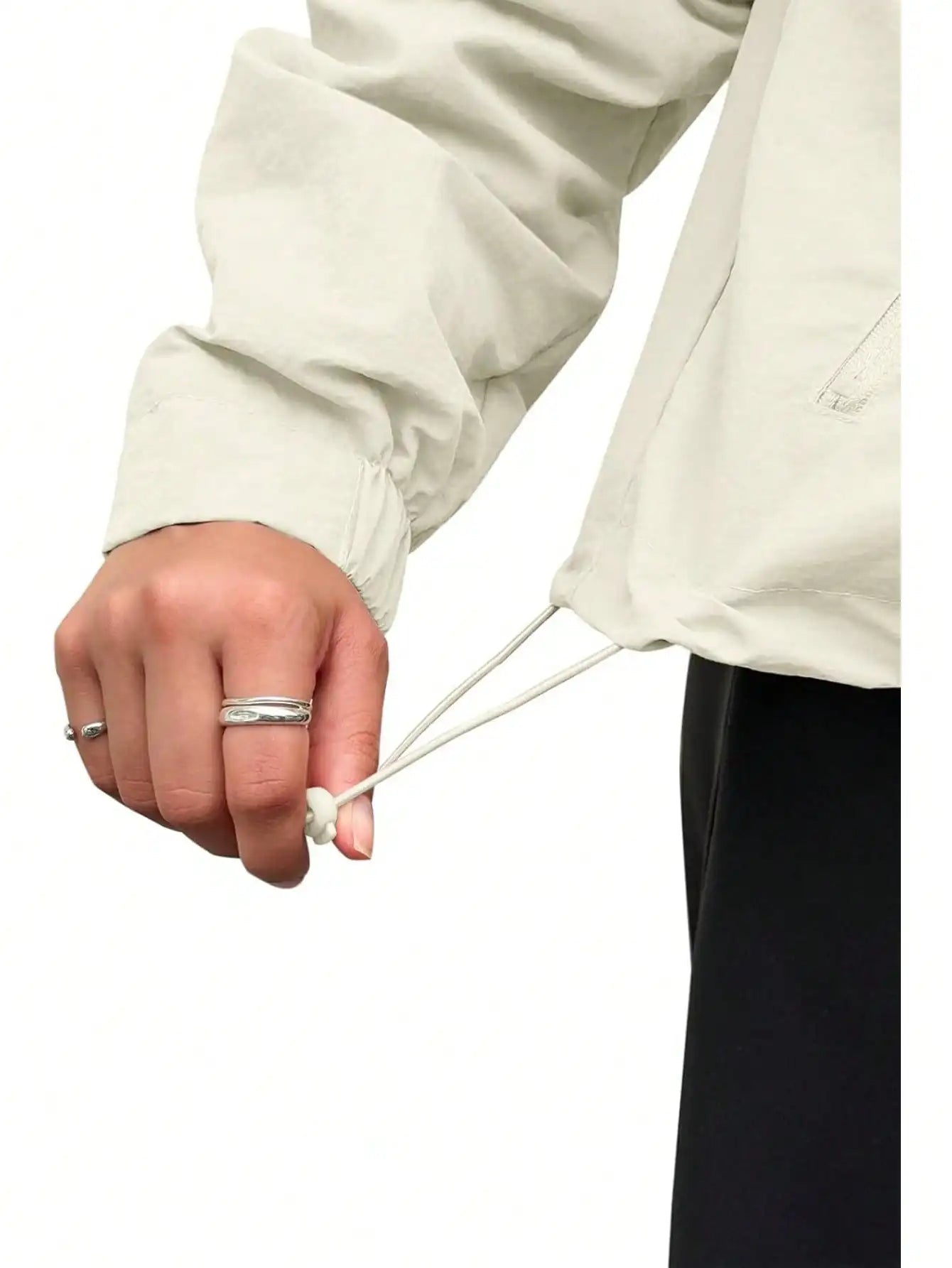 Fisoew Womens Cropped Jacket Zip Up Lightweight Hooded Trench Coat Active Outdoor Windbreaker Raincoat with Pockets