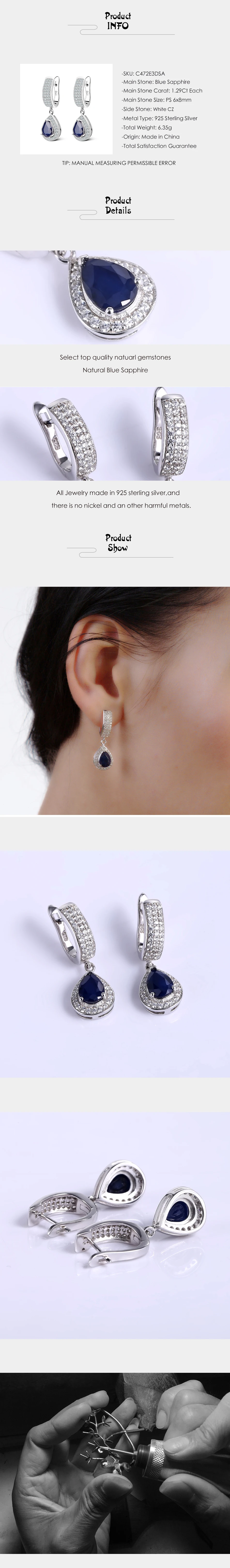 GEM'S BALLET 1.29ct Natural Sapphire Gemstone Drop Earrings Solid 925 Sterling Silver Fine Jewelry For Women Wedding