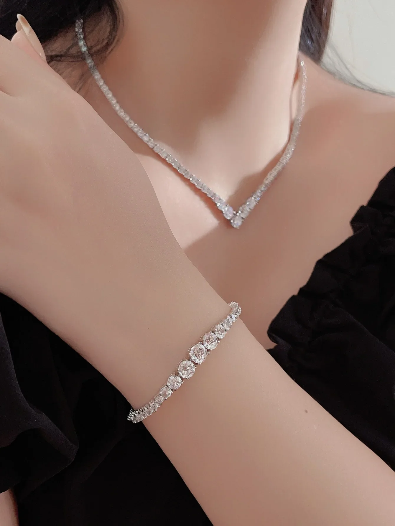 Hot Selling S925 Silver Accessories Simple Personality Inlaid Zircon Bracelet Bracelet Fashion Light Luxury Necklace
