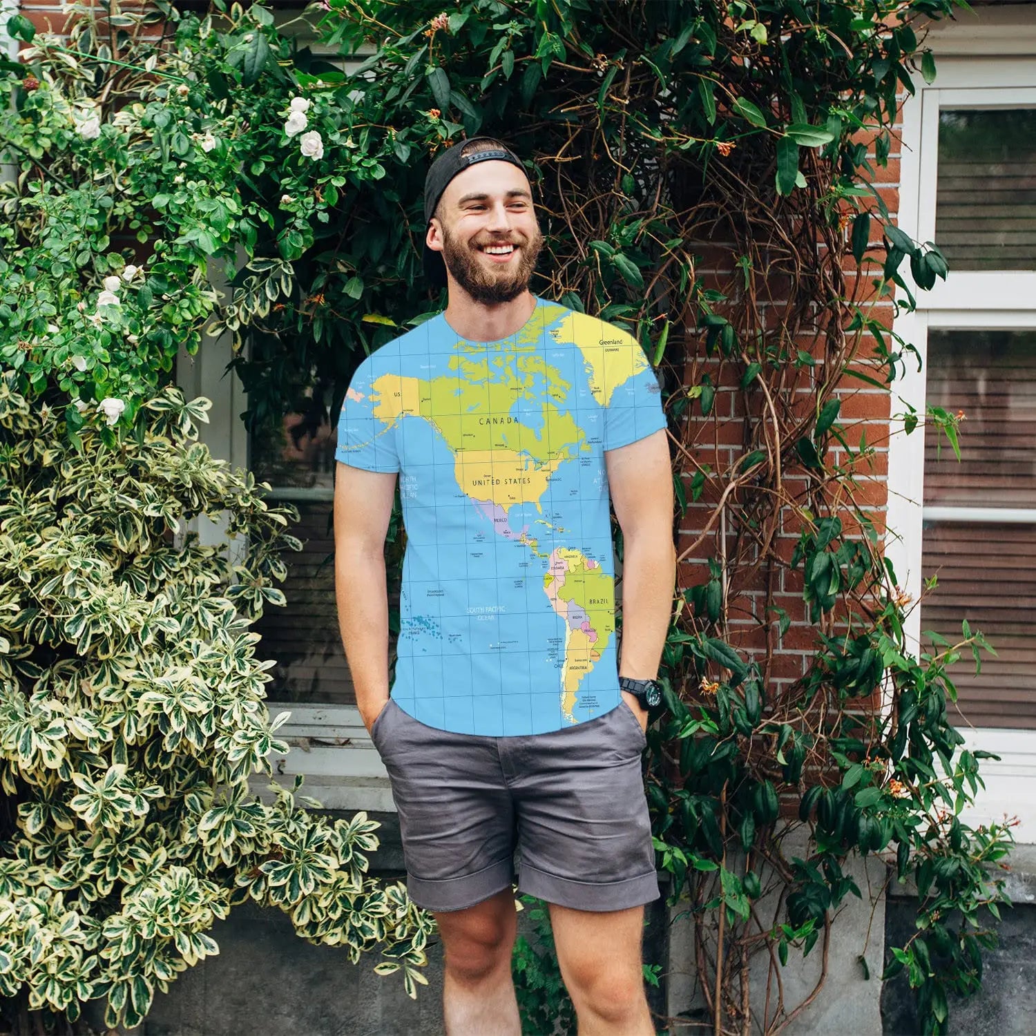 KYKU Men World Map Shirt Globe Costume Earth Print Geography for Adult