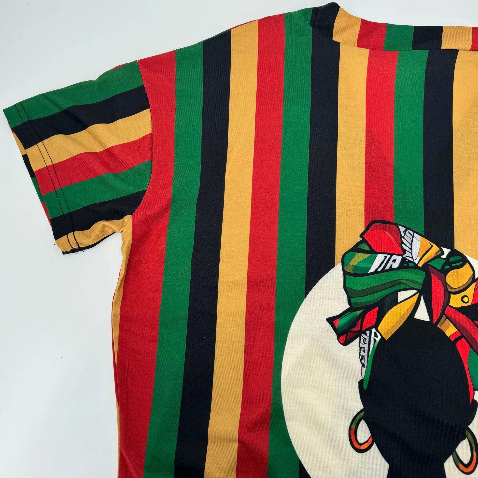 Large size casual and fashionable style stripes women's multi-color digital letter printing short-sleeved V-neck loose fit comfo