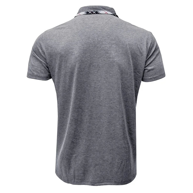 Men Short Sleeve T-Shirts Contrast Plaid Turn-Down Collar Buttons Business Casual Tops Summer Fashion Fit Shirts