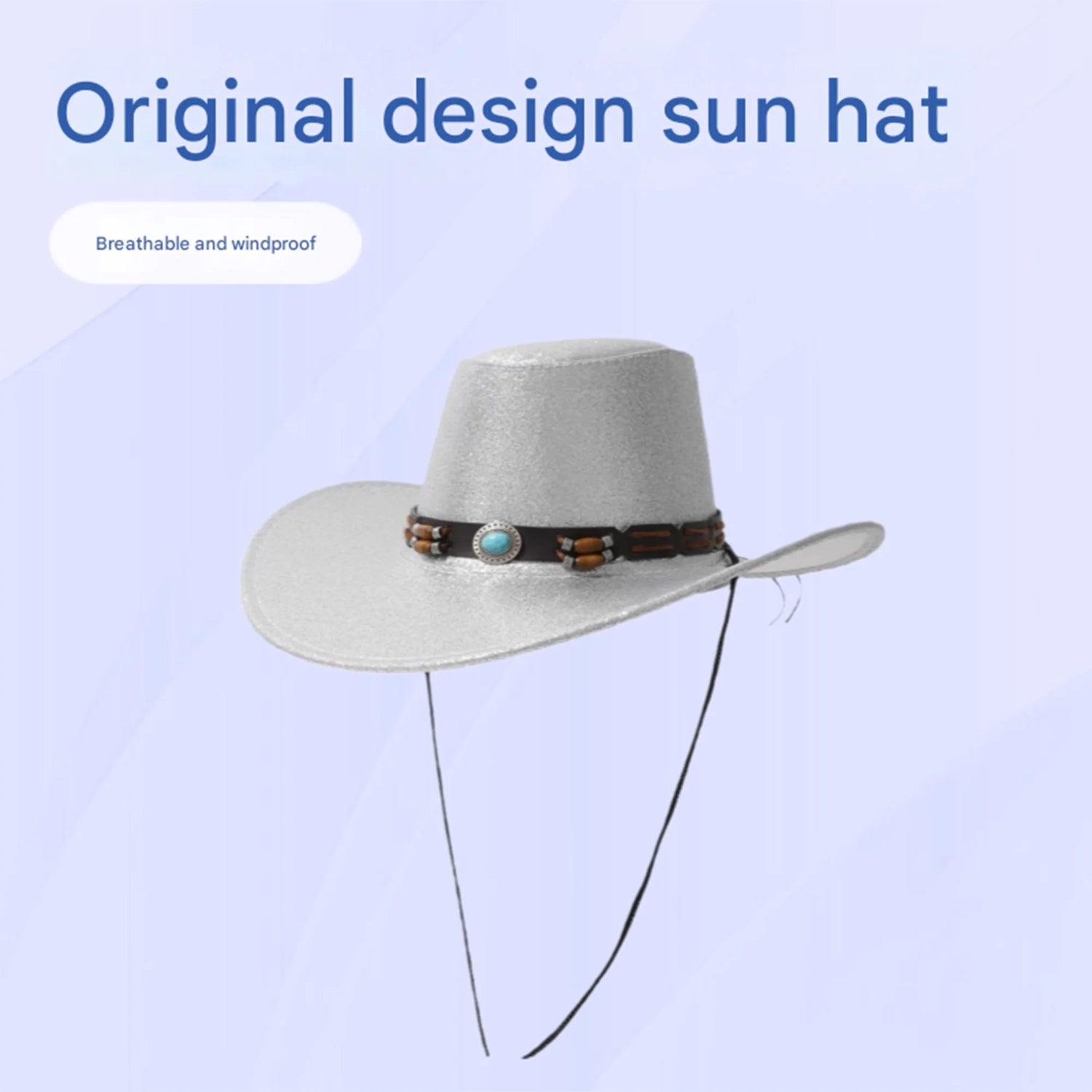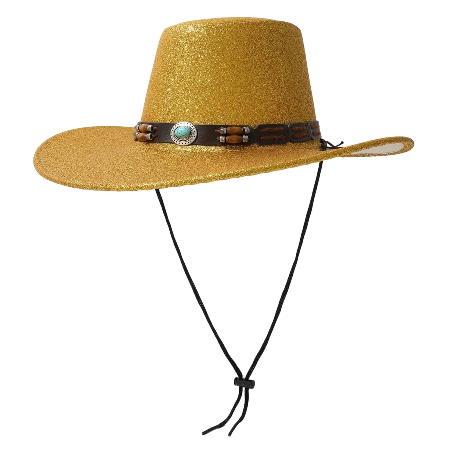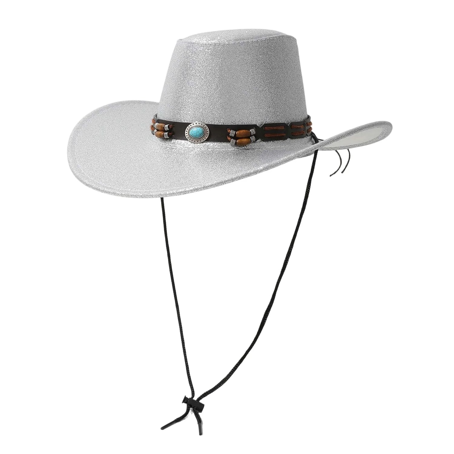 Women Men Cowgirl Hat, Vintage Shiny Roll-up Wide Brim Outdoor Western Hat with Belt