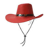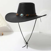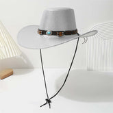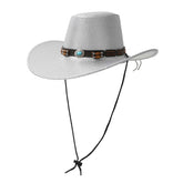 Men Women Vintage Style Cowboy Hat Retro Faux Leather Wide Brim Western Hat with Concho Band for Outdoor Activities
