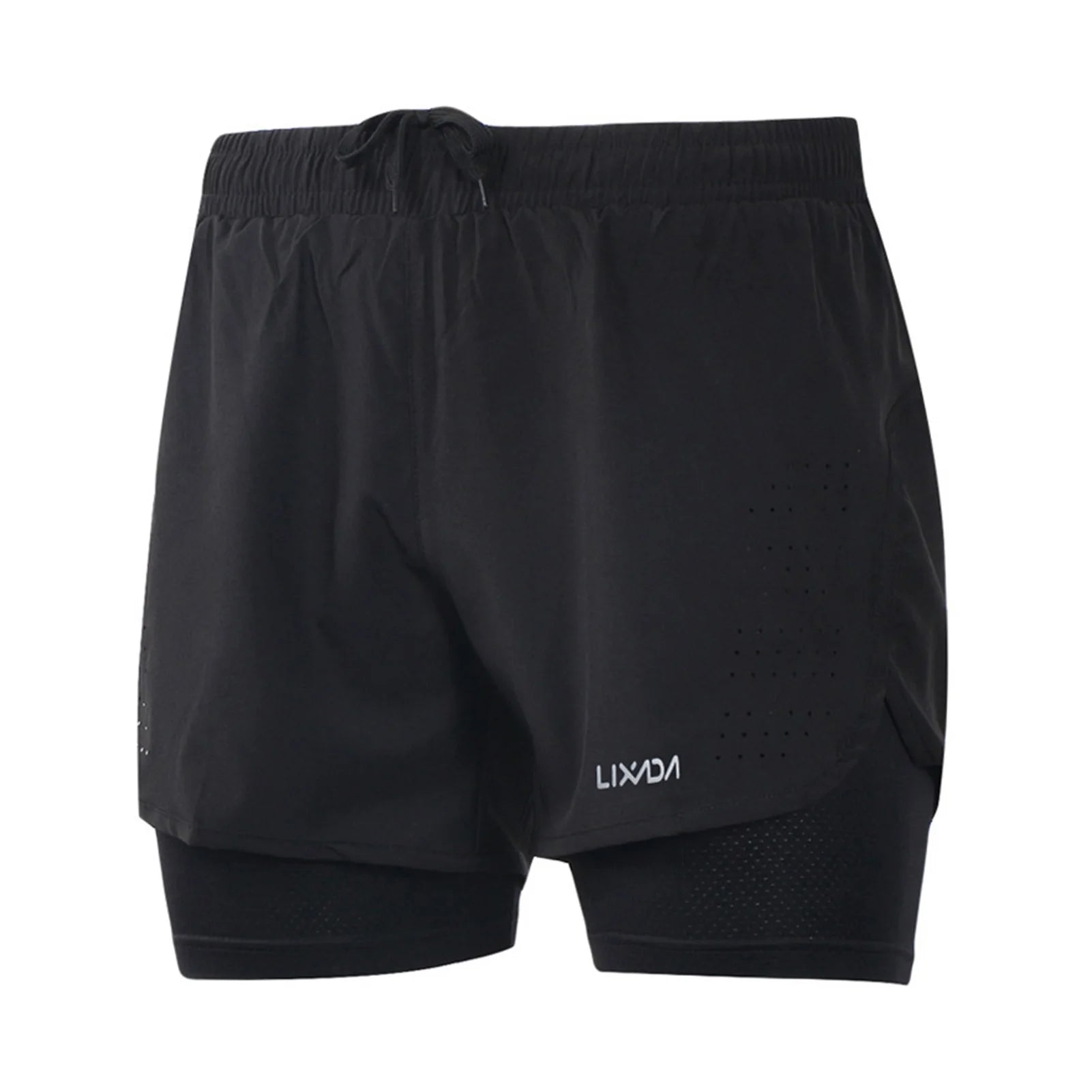 Men's 2-in-1 Running Shorts Quick Drying Breathable Active Training Exercise Jogging Cycle Shorts with Longer Liner