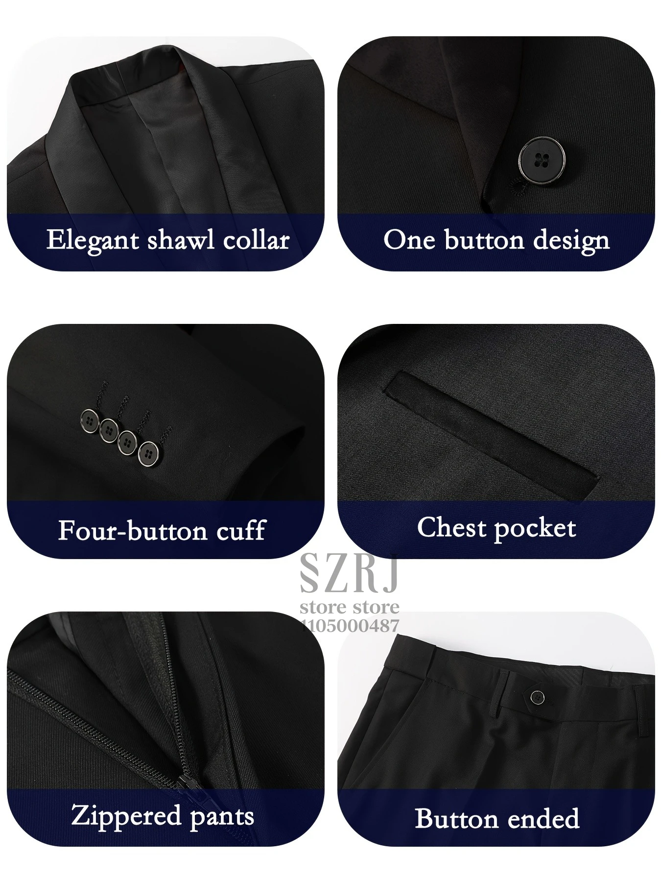 Men's 4-Piece Formal Suit: Jacket + Vest + Pants + Bow Tie, Shawl Collar, 1-Button, Flap Pockets, Wedding/Party