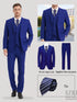 Men's 4-Piece Suit: Jacket+Vest+Pants+Blue Striped Tie. V-Neck, Gentleman Style, Tailored. For Business, Parties, Weddings.