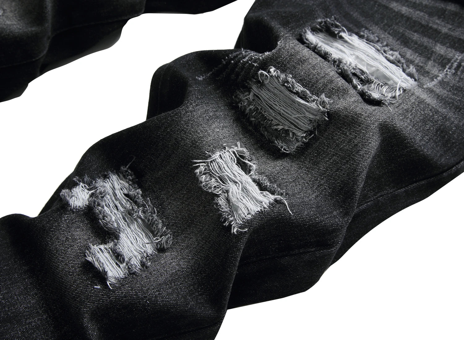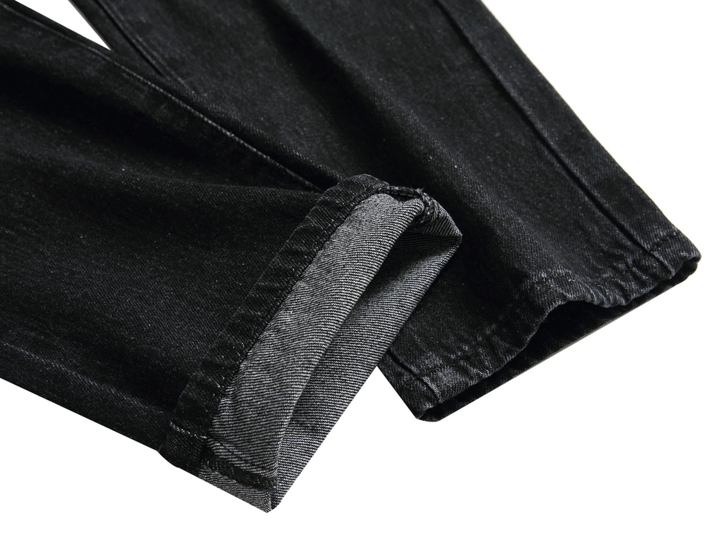Men's black casual ripped jeans, men's slim fashion casual denim trousers
