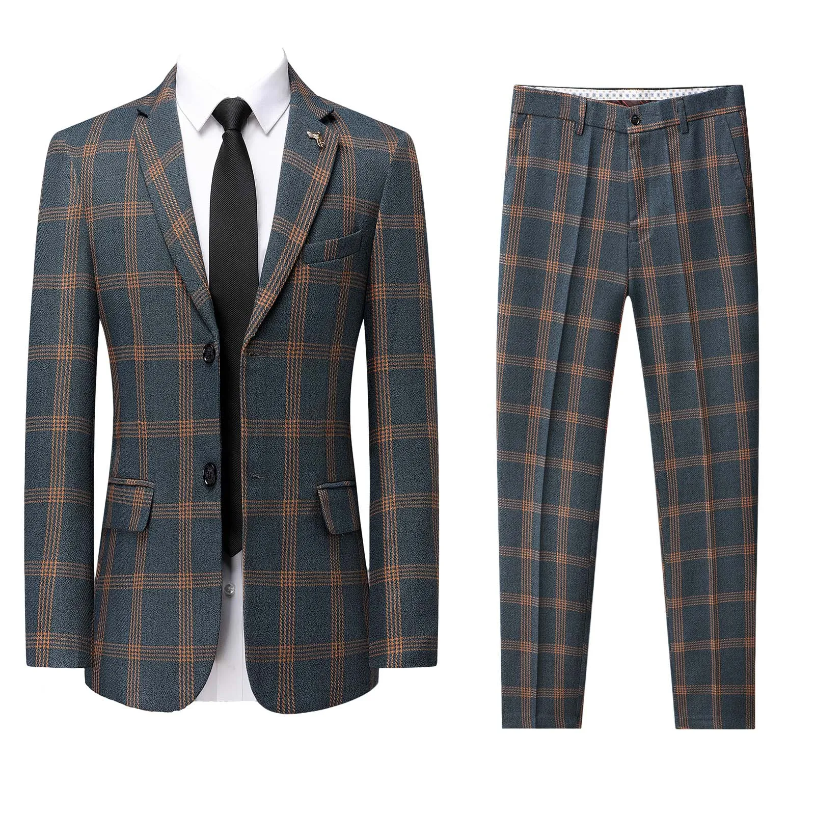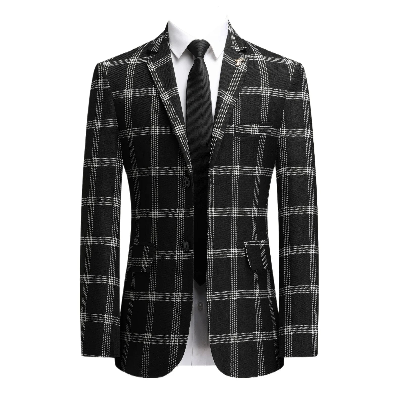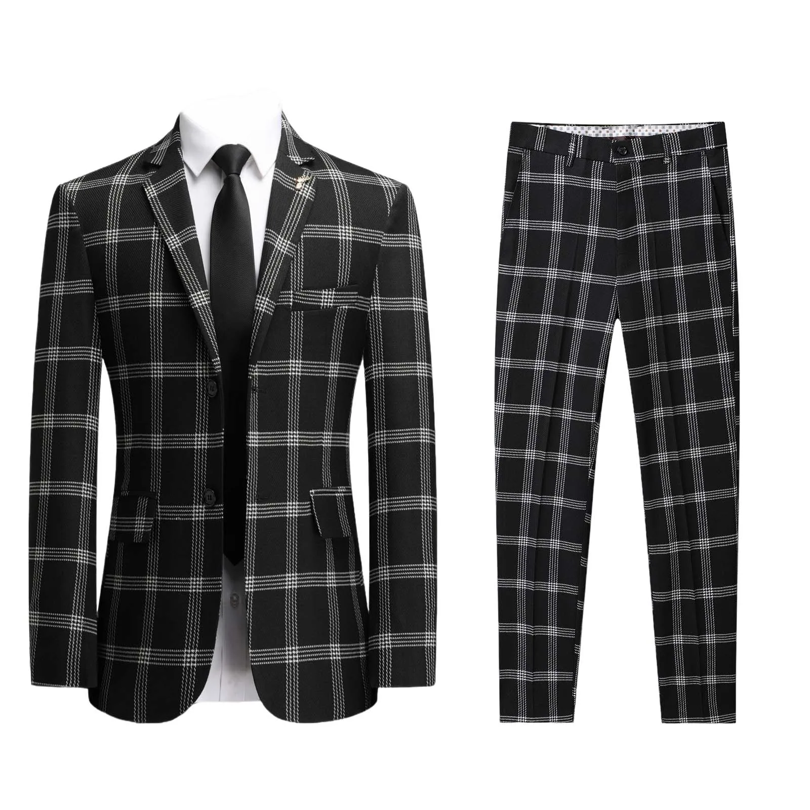 Men's Plaid Suit, Slim Fit Polyester Blend Long Sleeve Tuxedo with Chest Pocket, Machine Washable