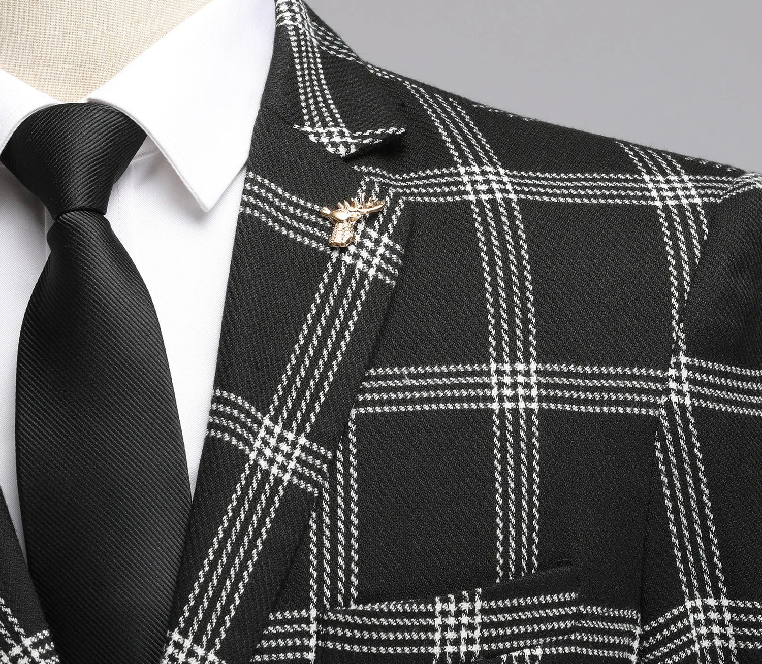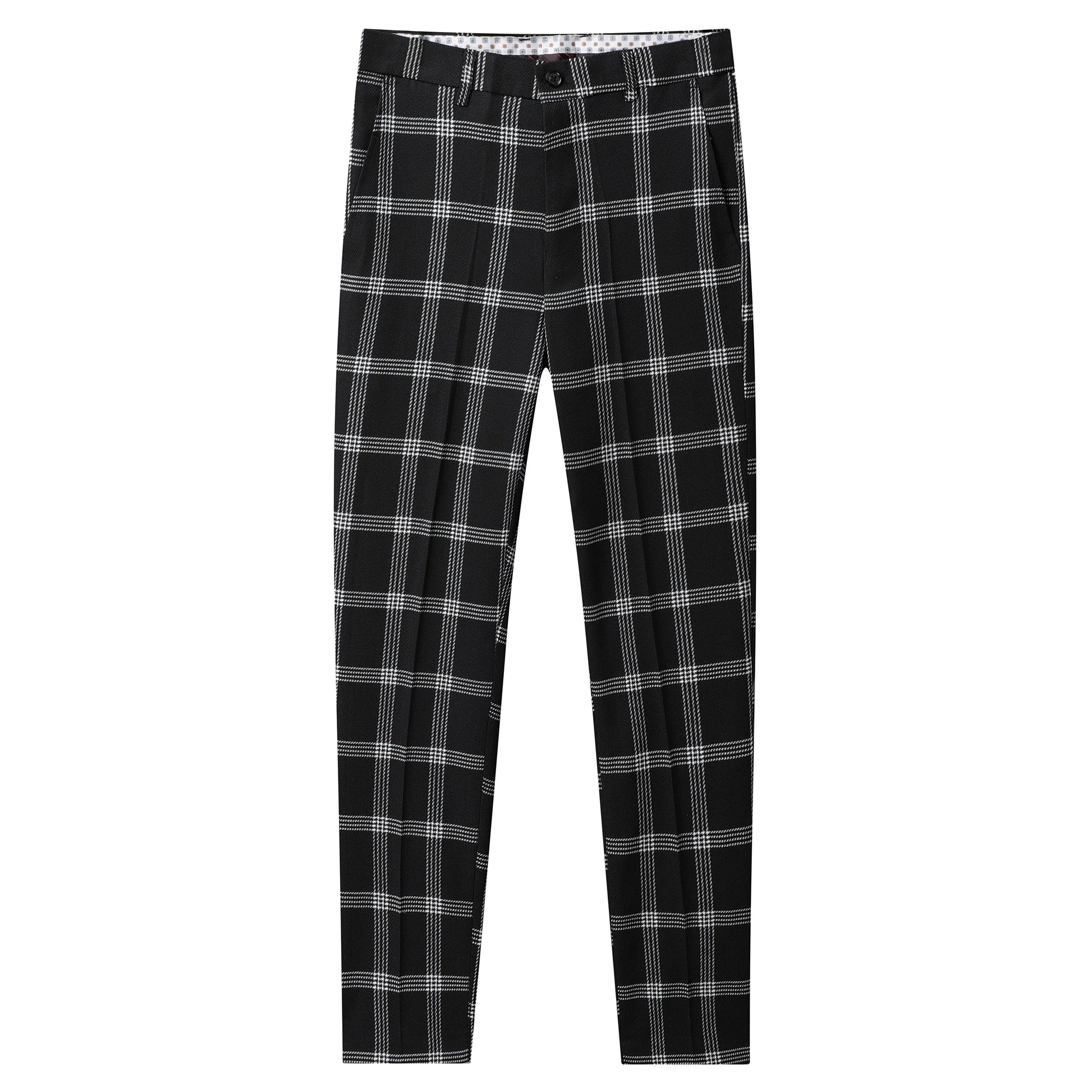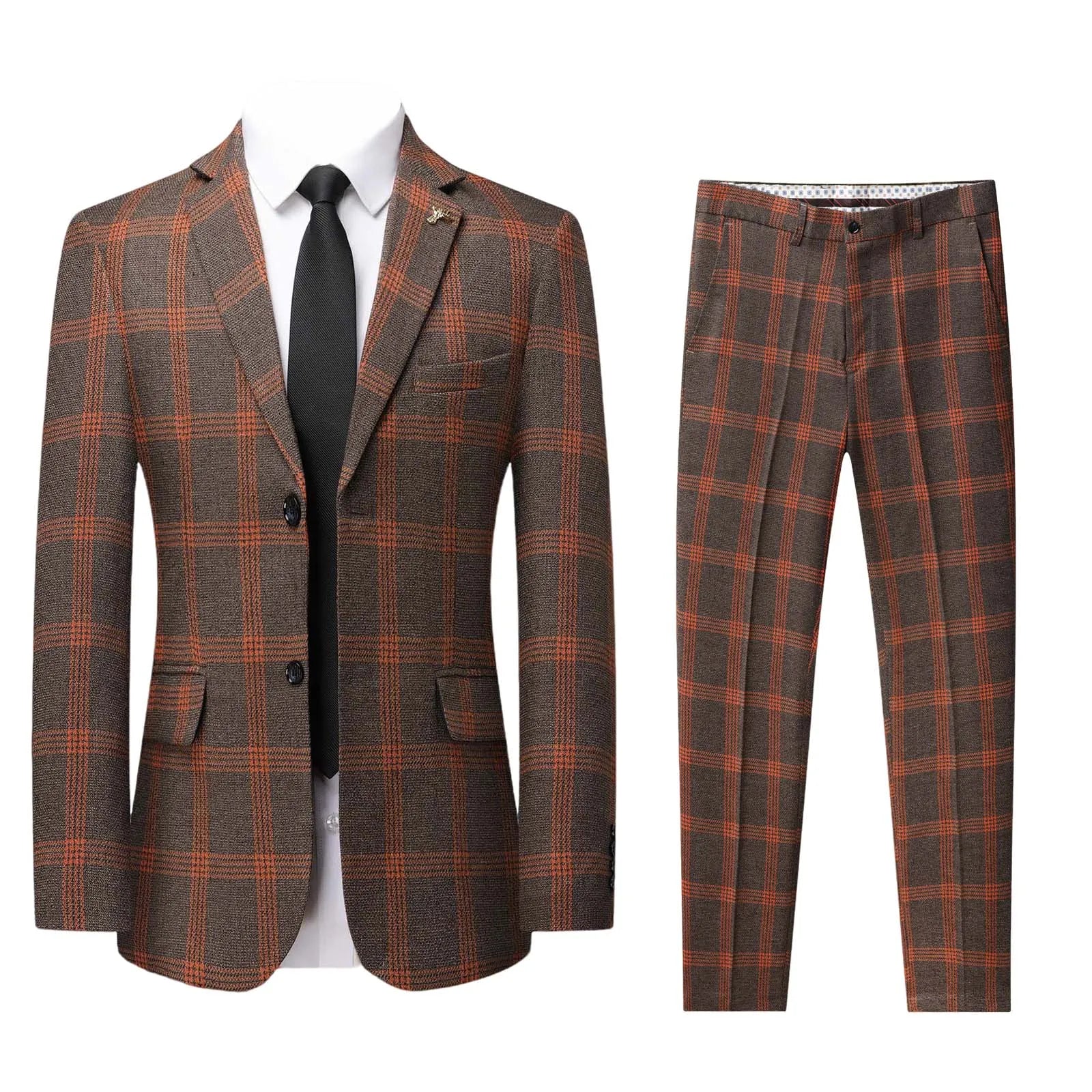 Men's Plaid Suit, Slim Fit Polyester Blend Long Sleeve Tuxedo with Chest Pocket, Machine Washable