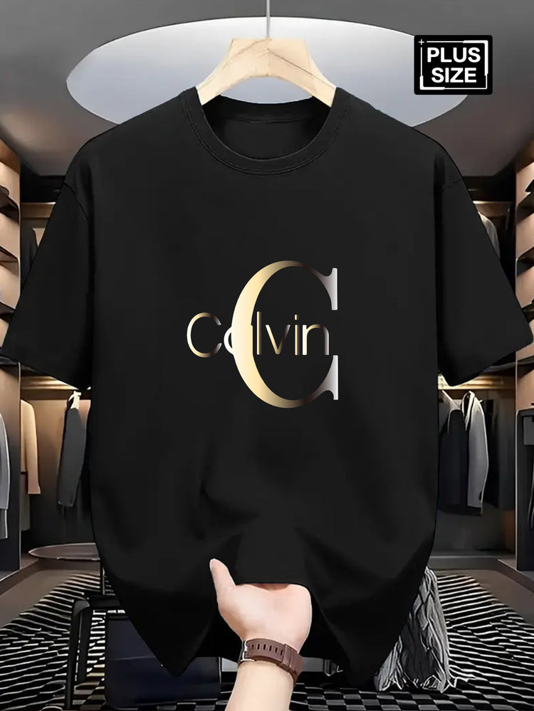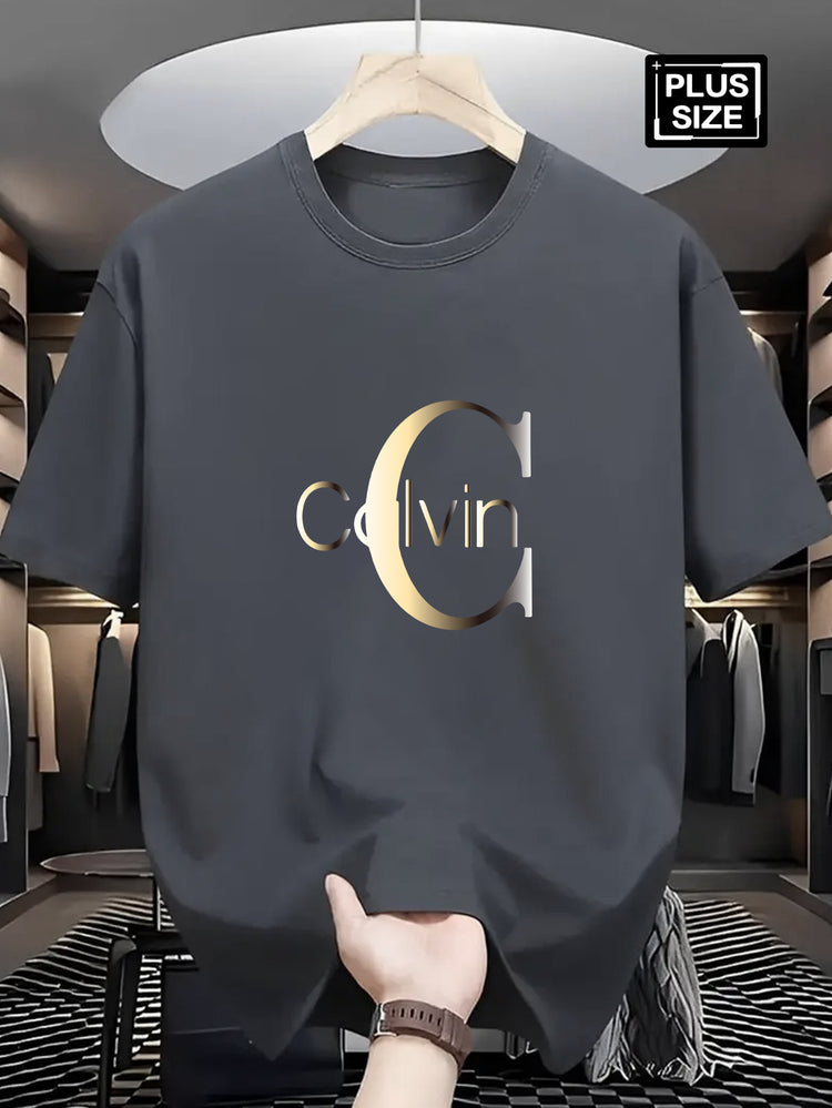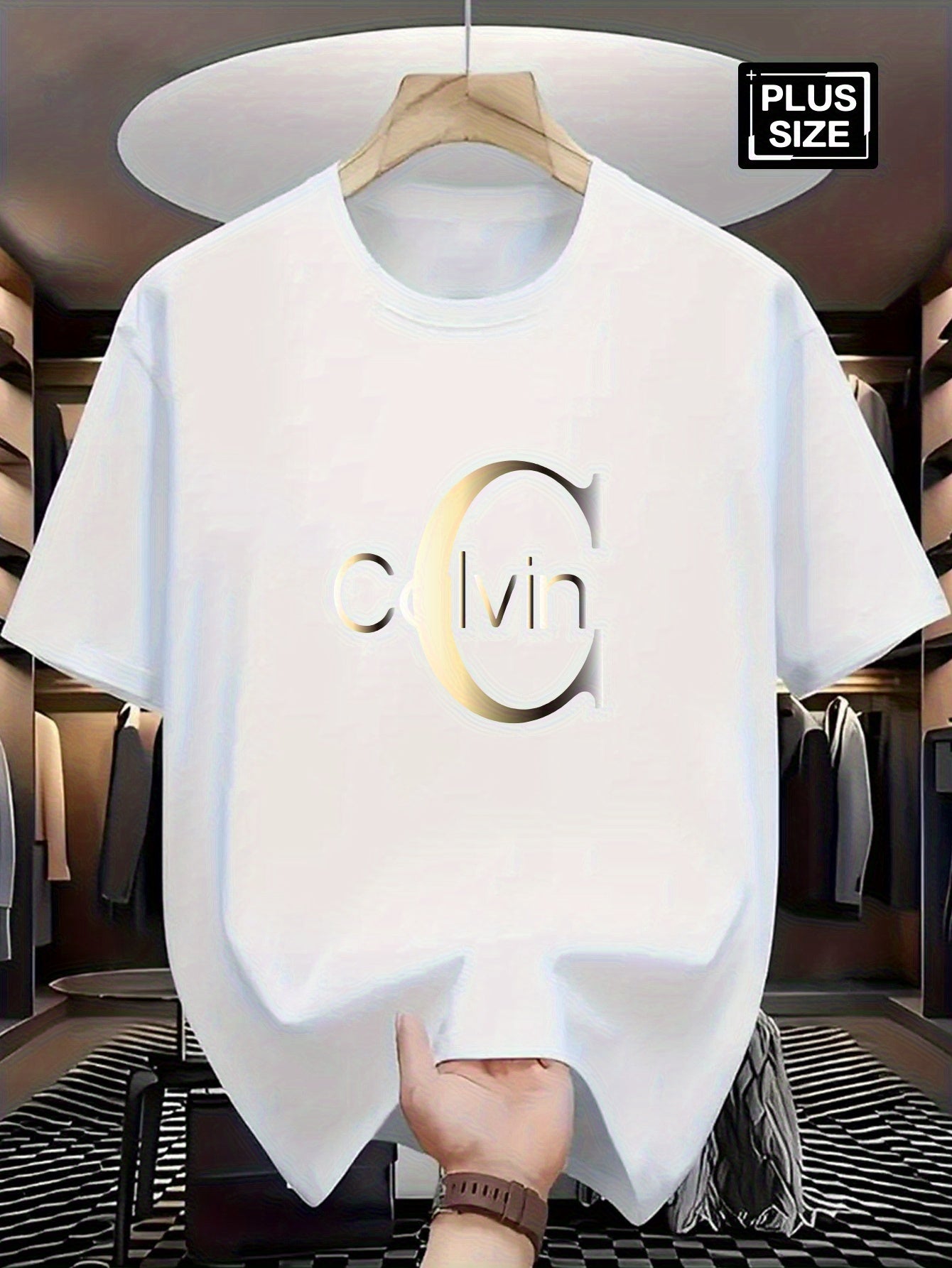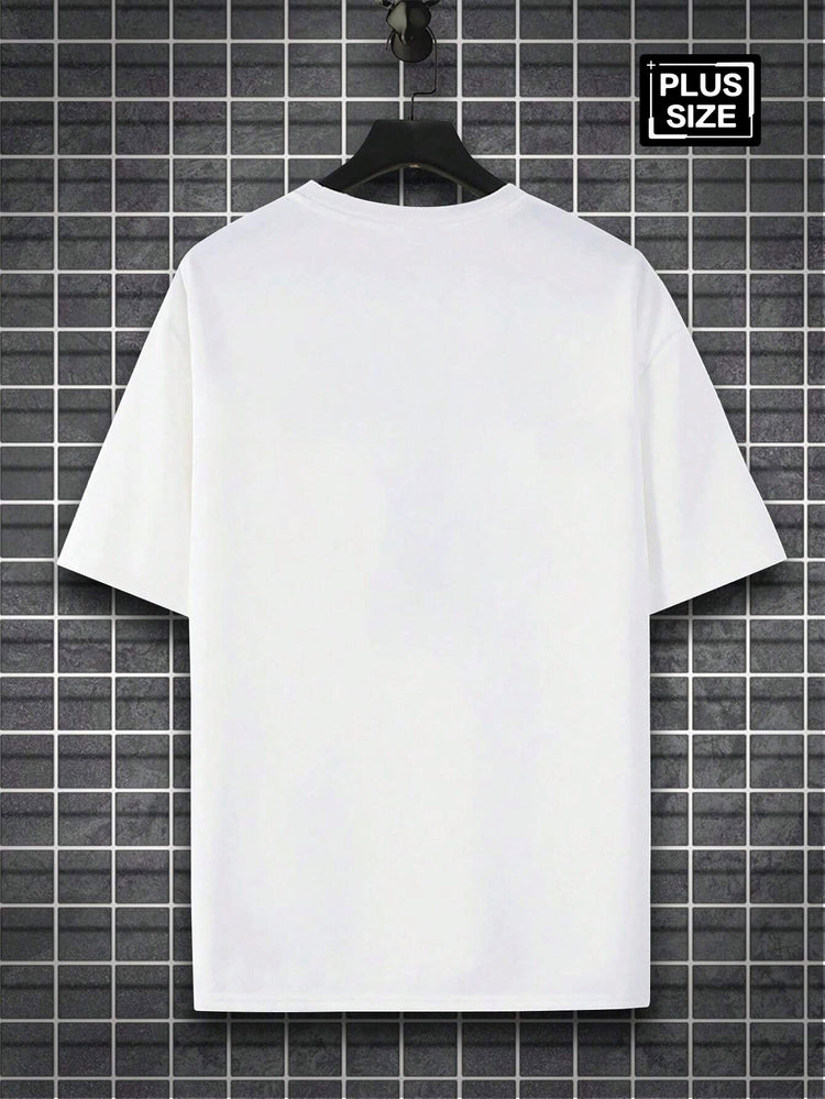 Men's Plus Size Short Sleeve T-Shirt - Premium Milk Silky Fabric, Bold Letter Graphic Print, Crew Neck Casual Summer Tee, Machine Washable & Dry Cleanable, PLUS SIZE