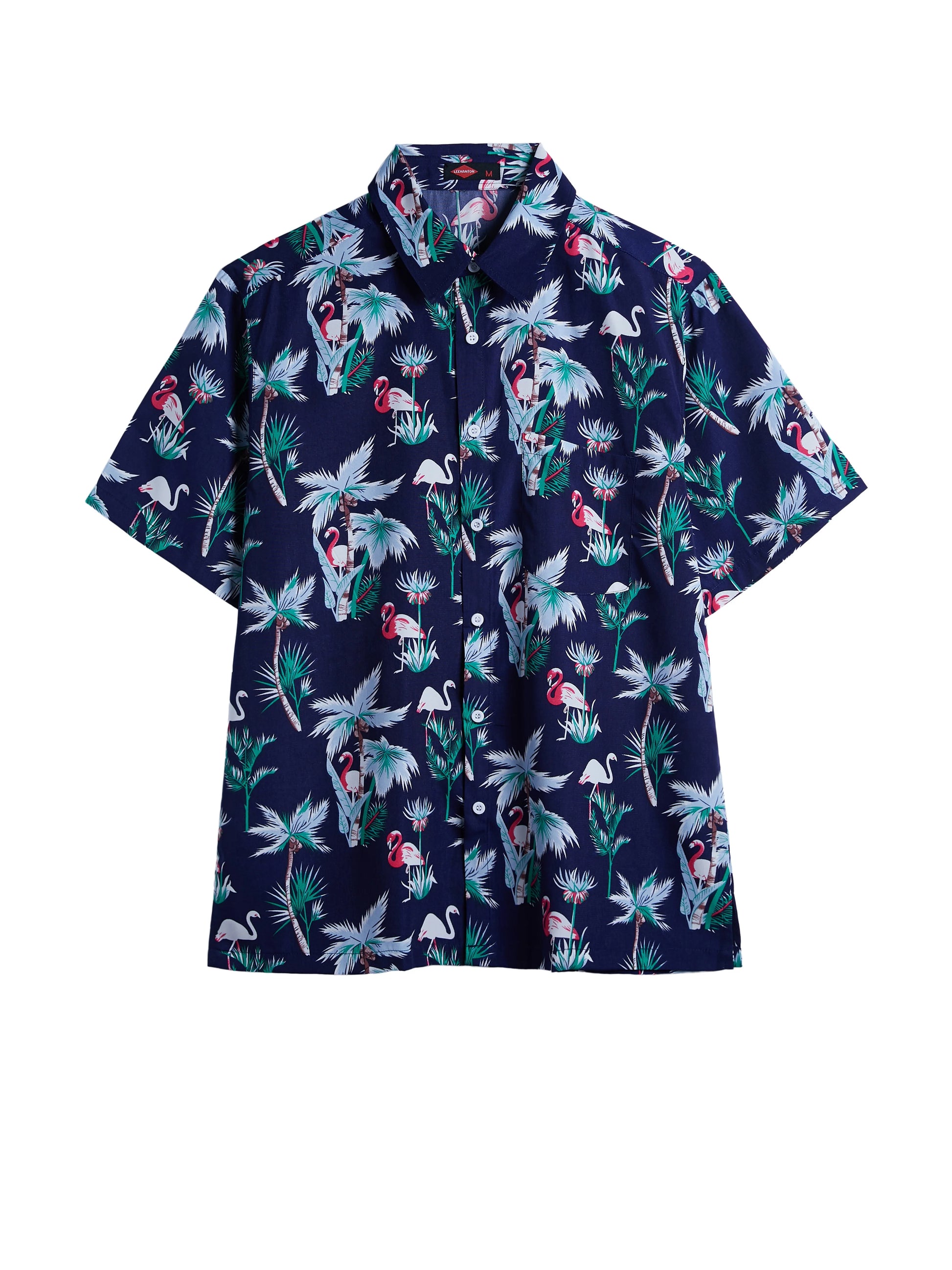 Men's short sleeved button up collar shirt, casual summer Hawaiian style, men's vacation beach wear