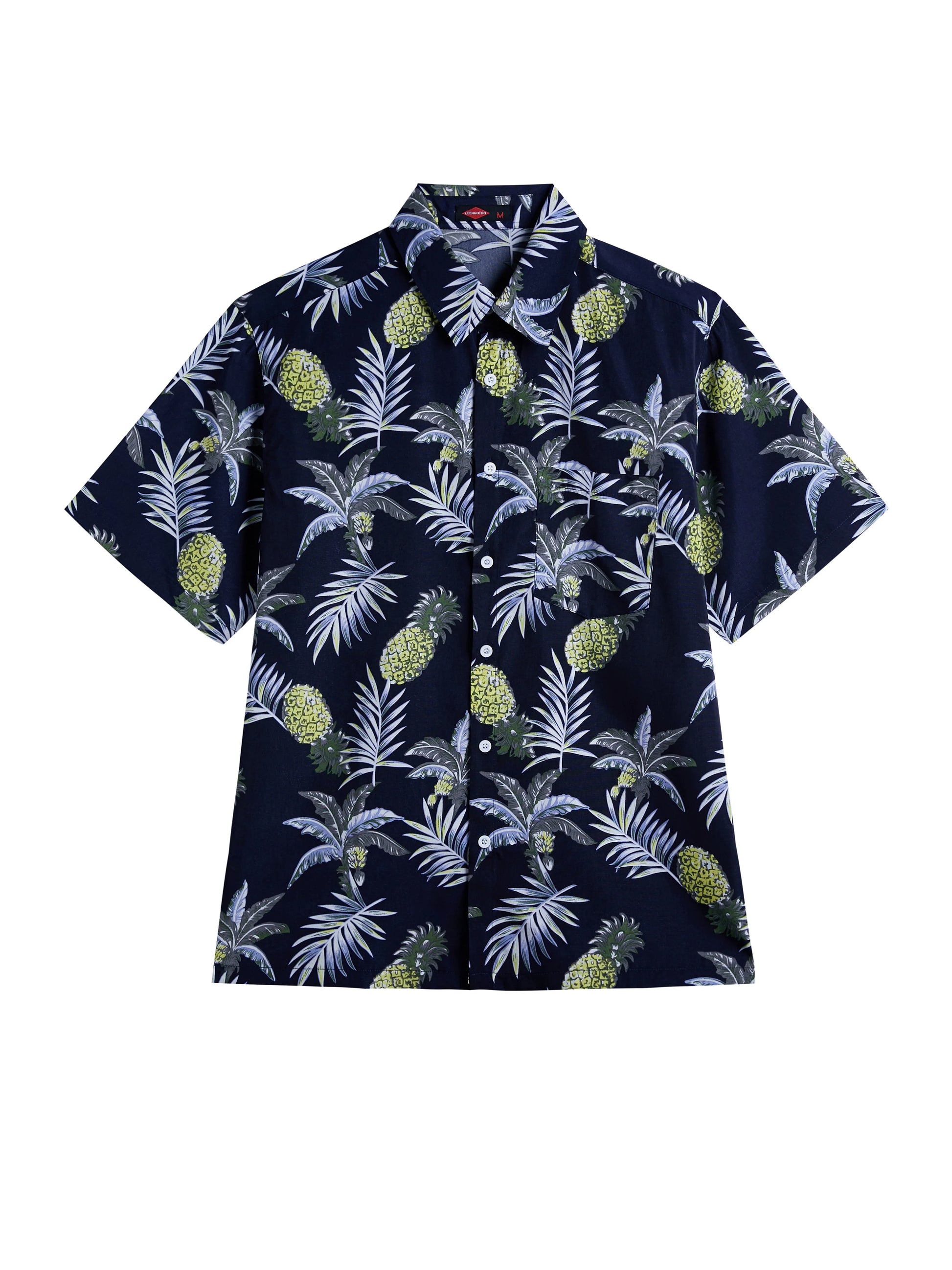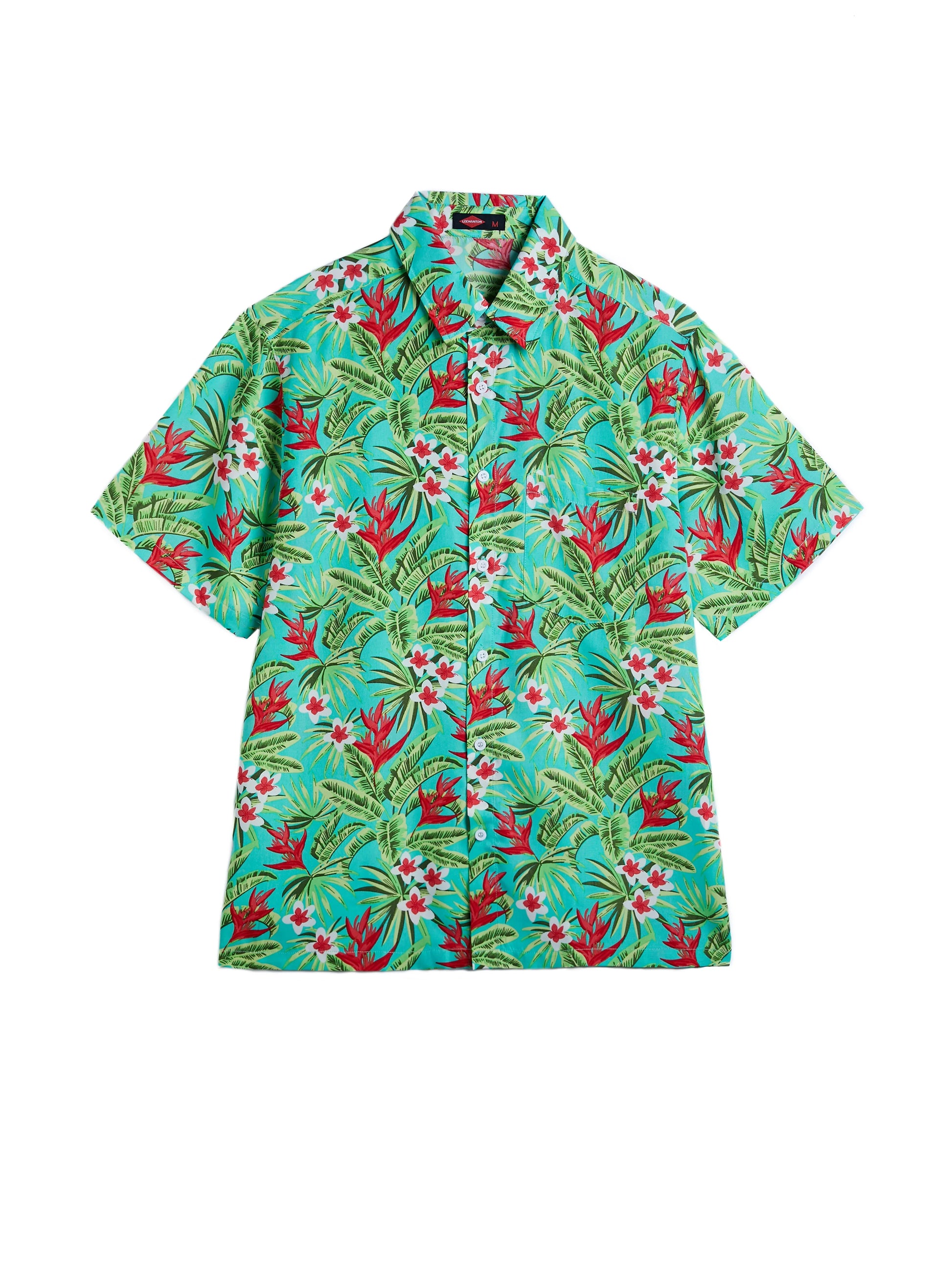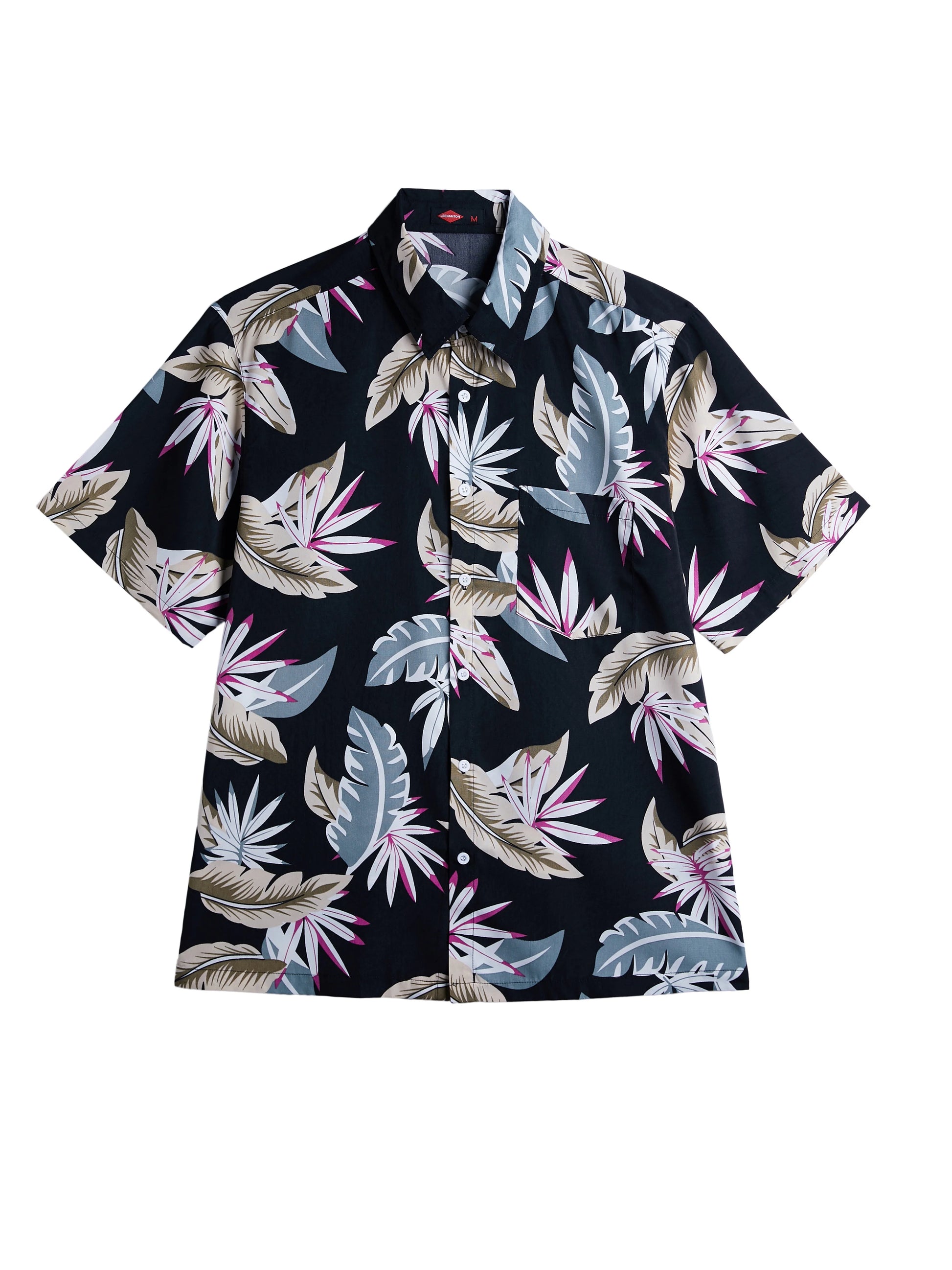 Men's slim fit short sleeved shirt, casual and loose Hawaiian style, suitable for home and vacation wear