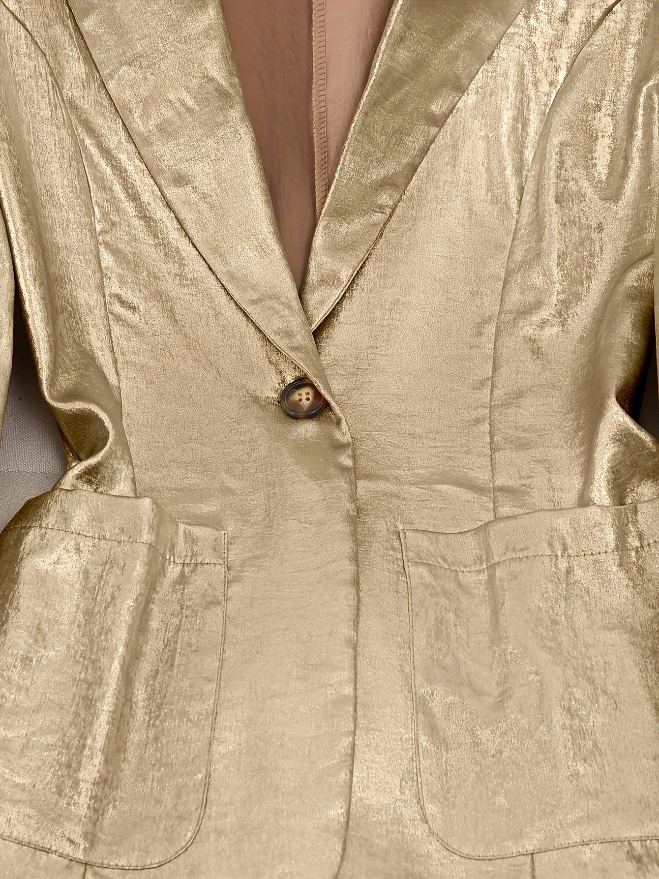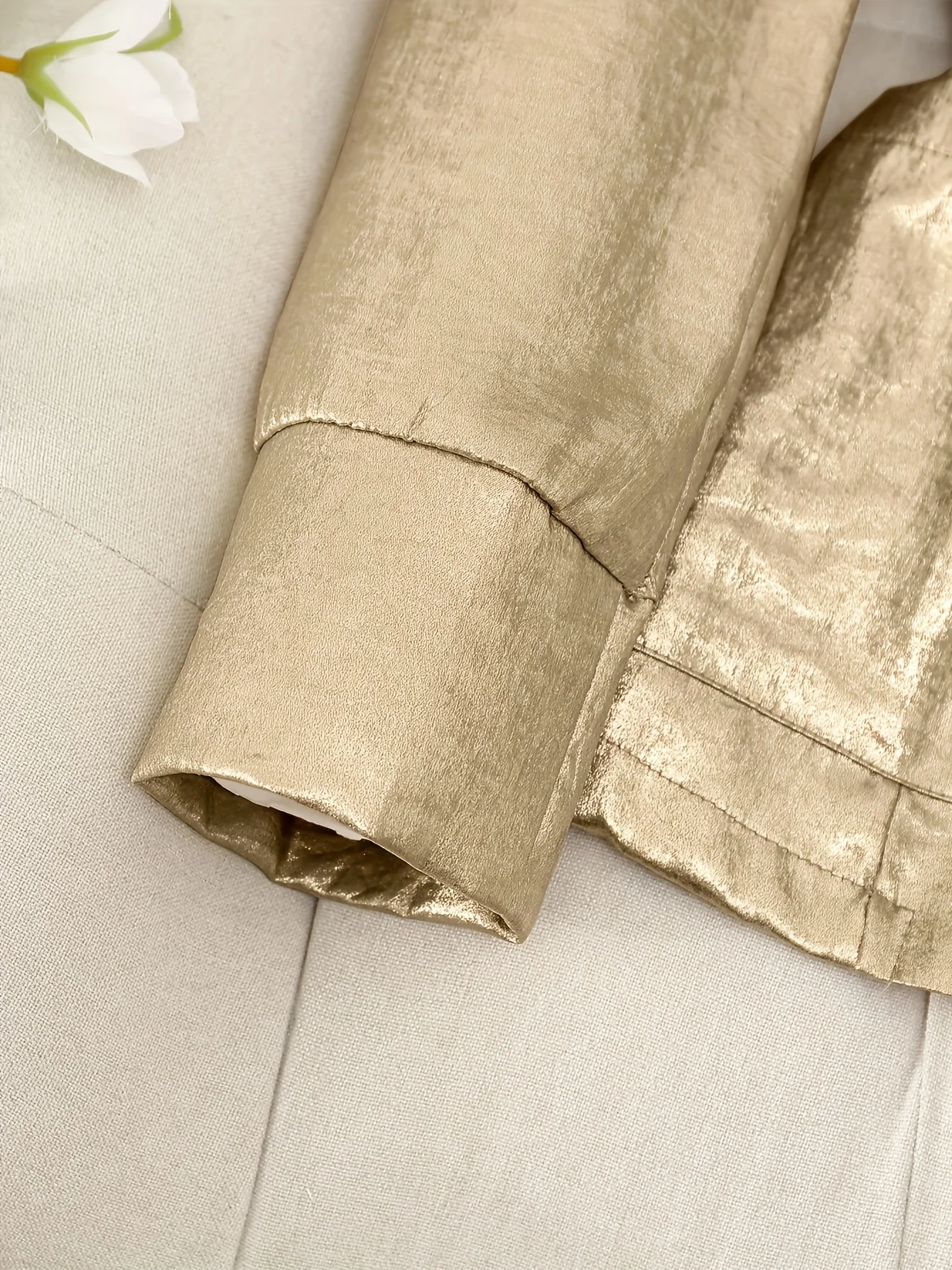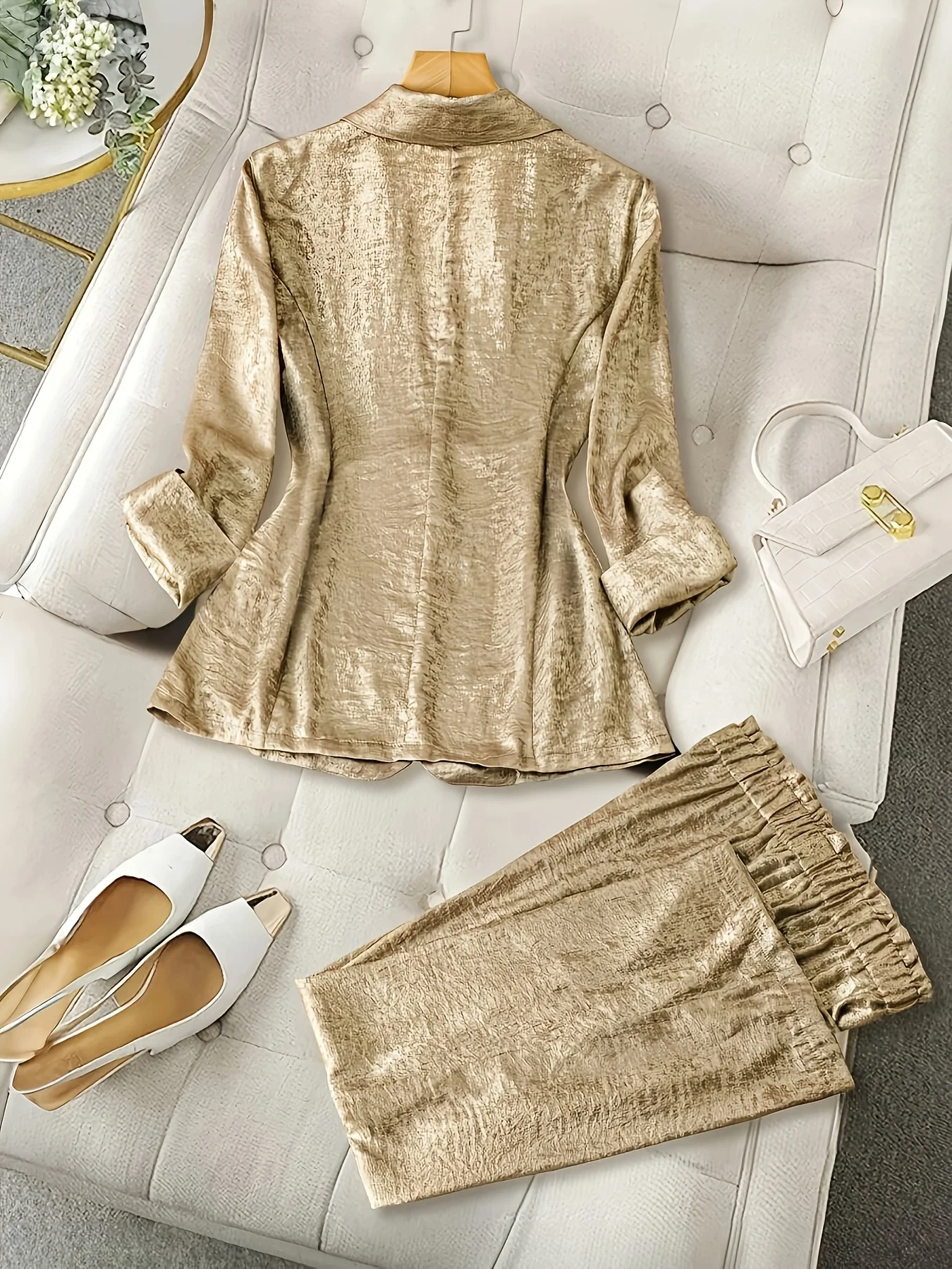 Metallic lapel single button pocket women's suit elegant jacket straight trousers suit, suitable for commuting, office, gatherin