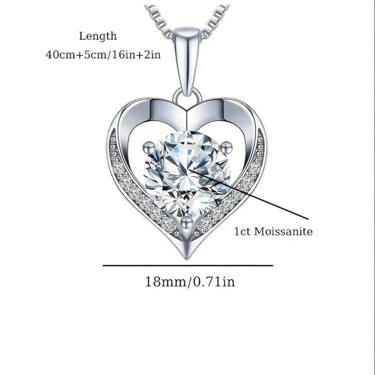 Moissanite Necklace for Women, 1-3 Carat Moissanite Heart Necklace ,Birthday Gift for Wife, Anniversary Present for Wife