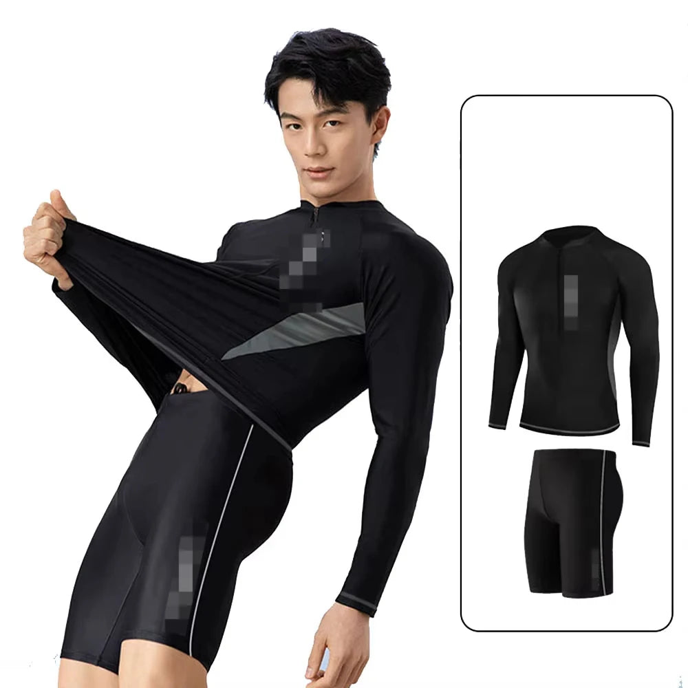 New Men's Quick-Drying Swimsuit Long-Sleeved Sun-proof Beach T-shirt Snorkeling Surfing Suit Water Sports Swimsuit Surfing Top