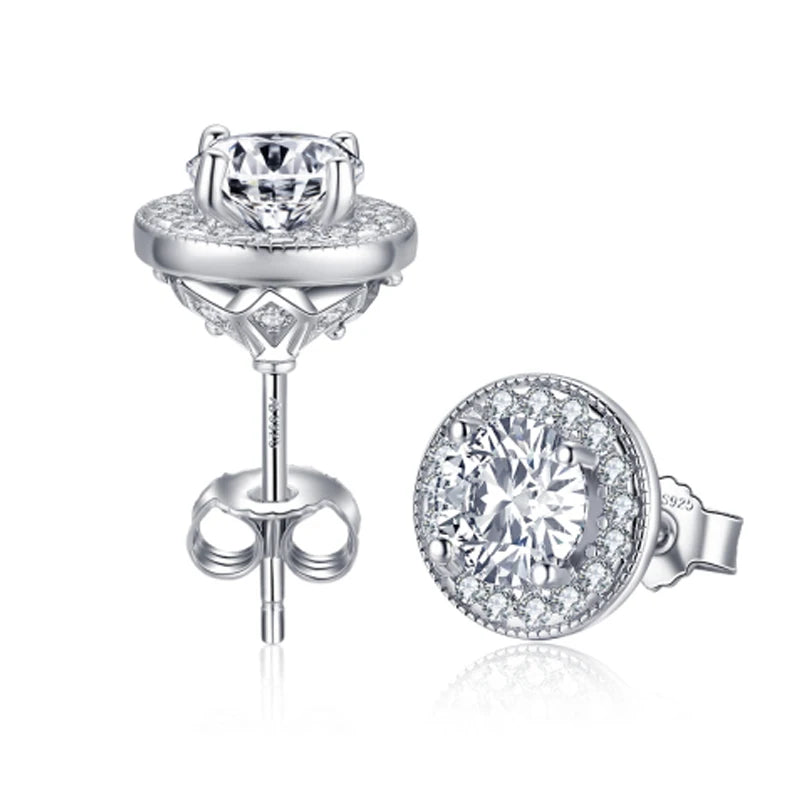 OXTAO Trendy 925 Sterling Silver Round Cut 7mm Main Stone Stud Earrings Engagement Wedding Female Jewelry Piercing Accessories