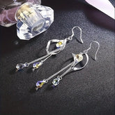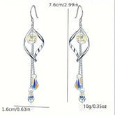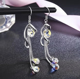Charming Long Earrings: These platinum plated long earrings are adorned with color-changing Aurora Austrian crystals, adding a touch of elegance to formal and casual outfits