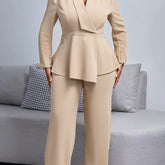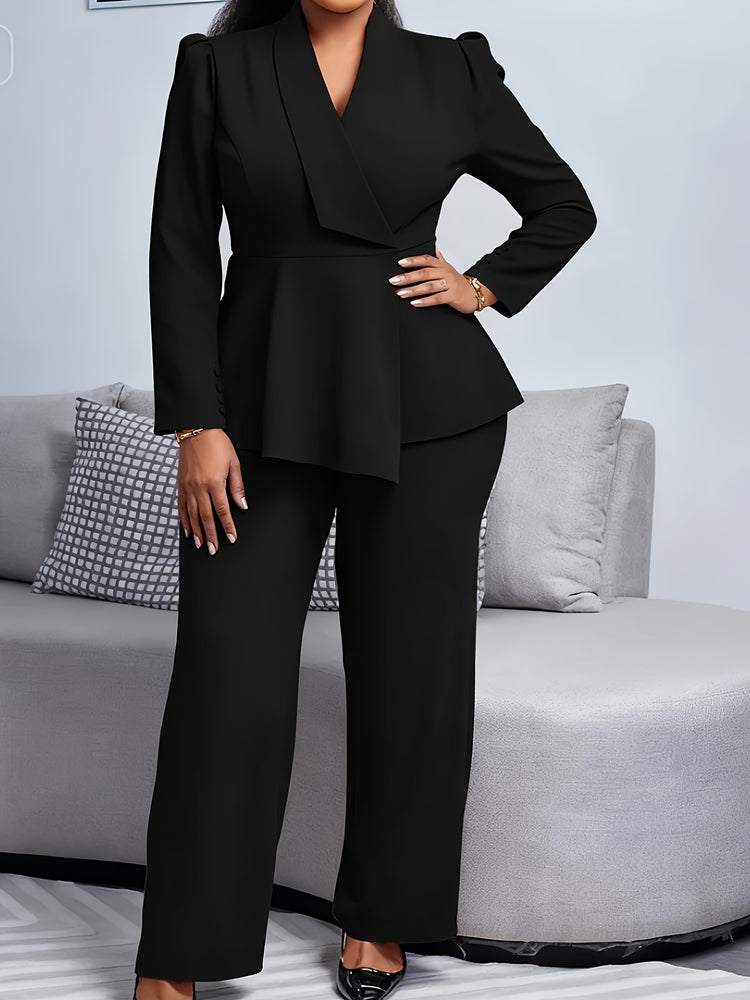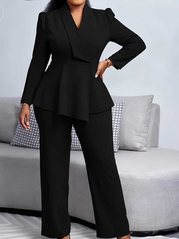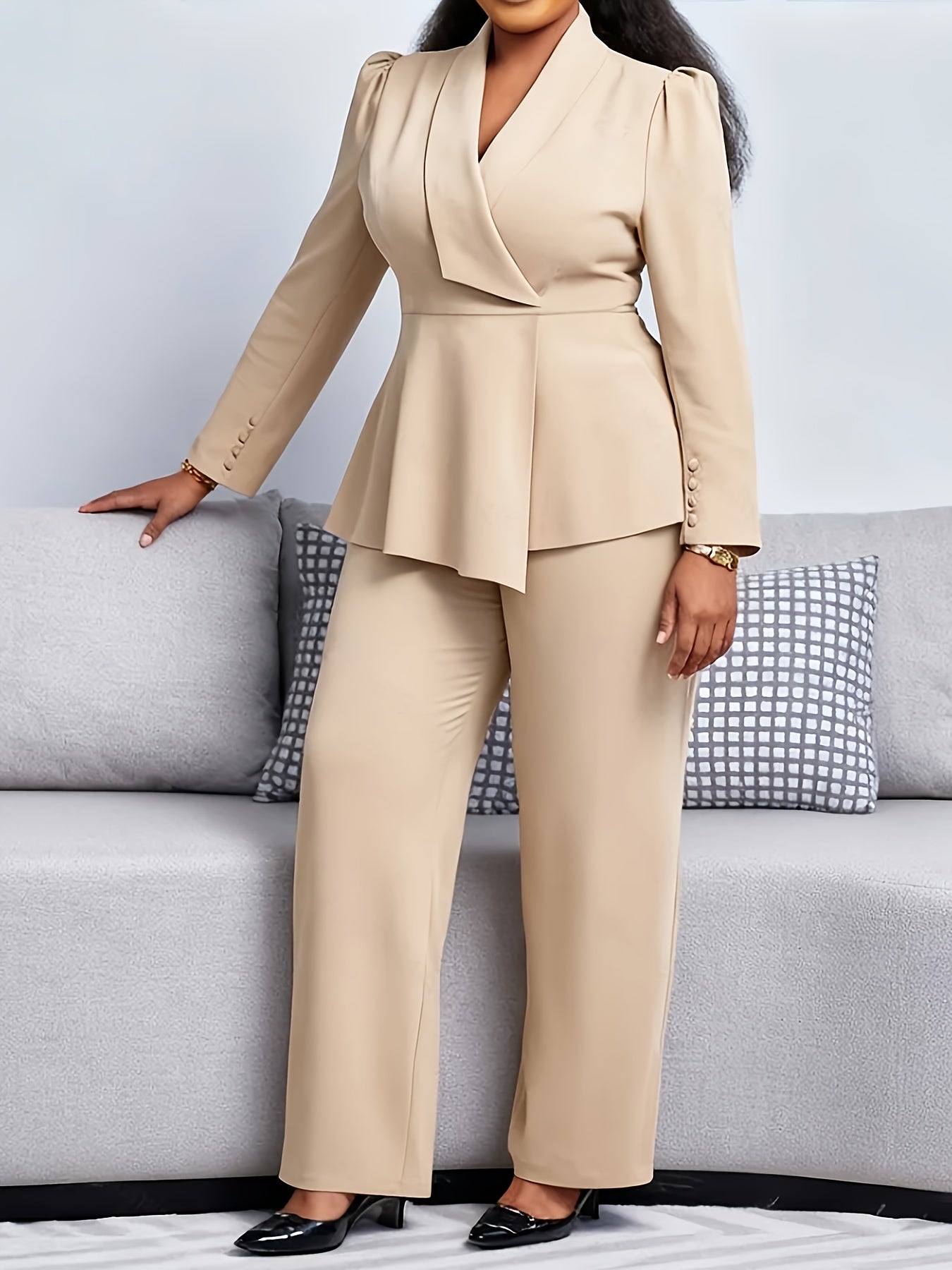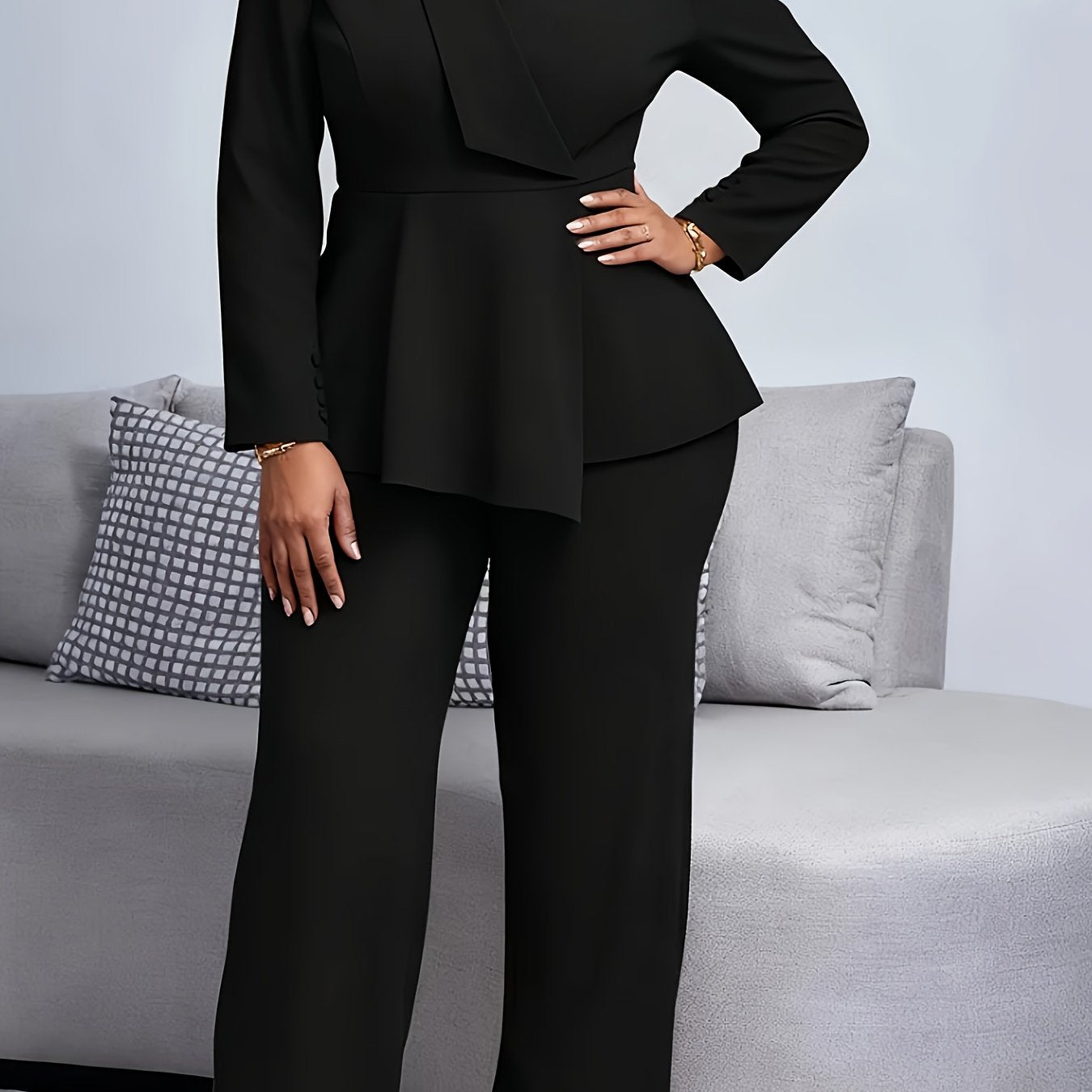 Plus Size, SCACTO Plus-Size Ladies' Autumn and Winter Fashion Elegant Suit Set, Two-Piece, Lapel High-Waist, Suitable for Both Daily and Formal Wear.