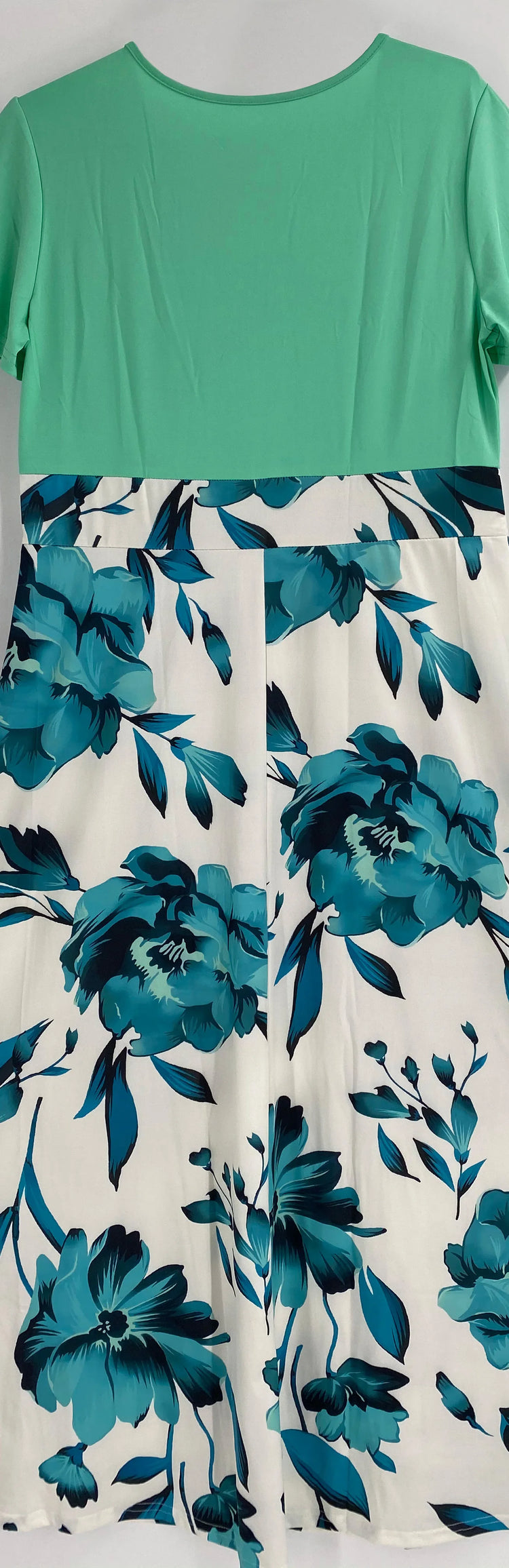 Plus Size Women's Dress Flower Print Round Neck Long Sleeve Elegant Dress