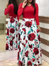 Plus Size Women's Dress Flower Print Round Neck Long Sleeve Elegant Dress