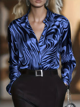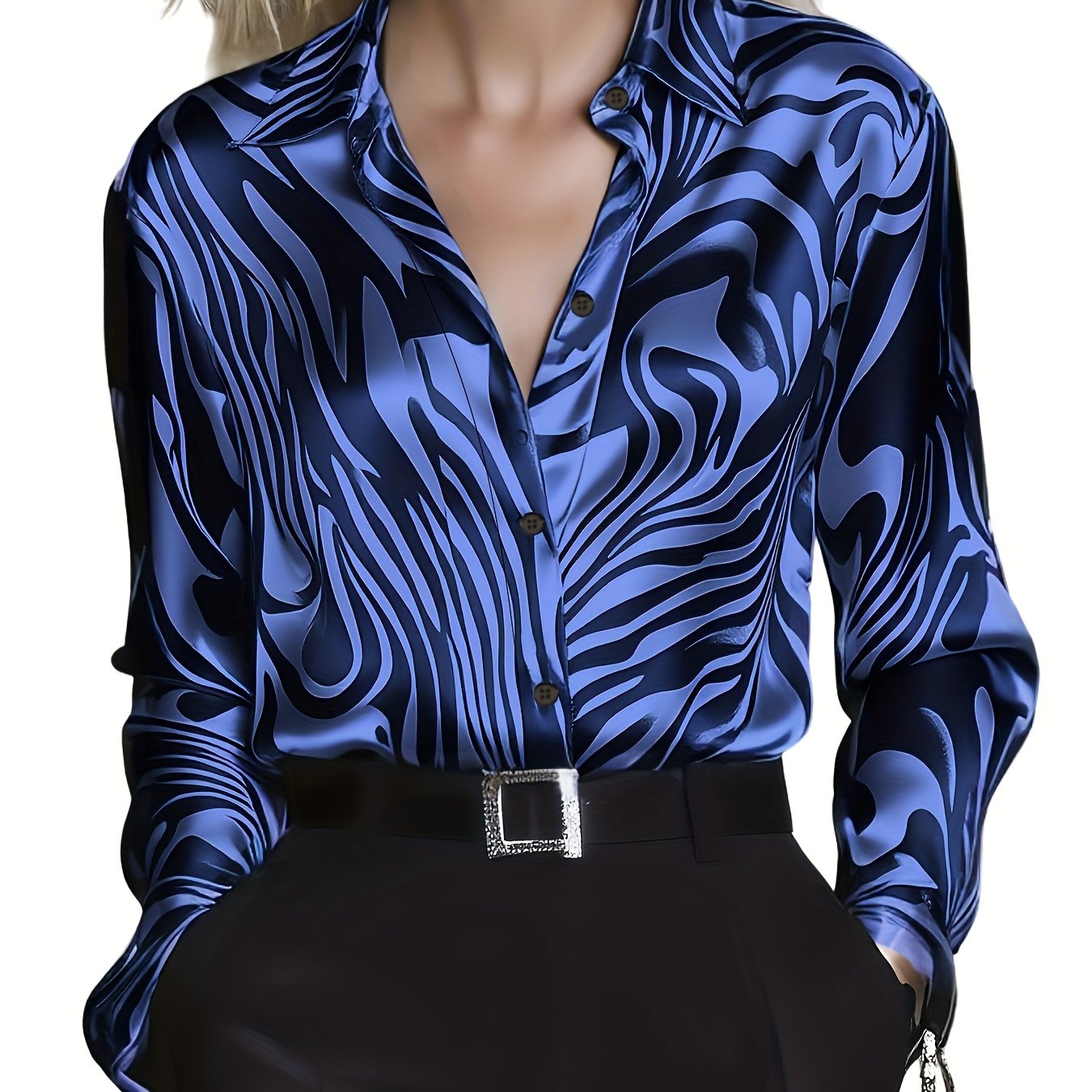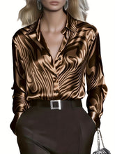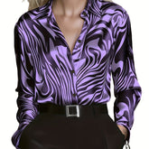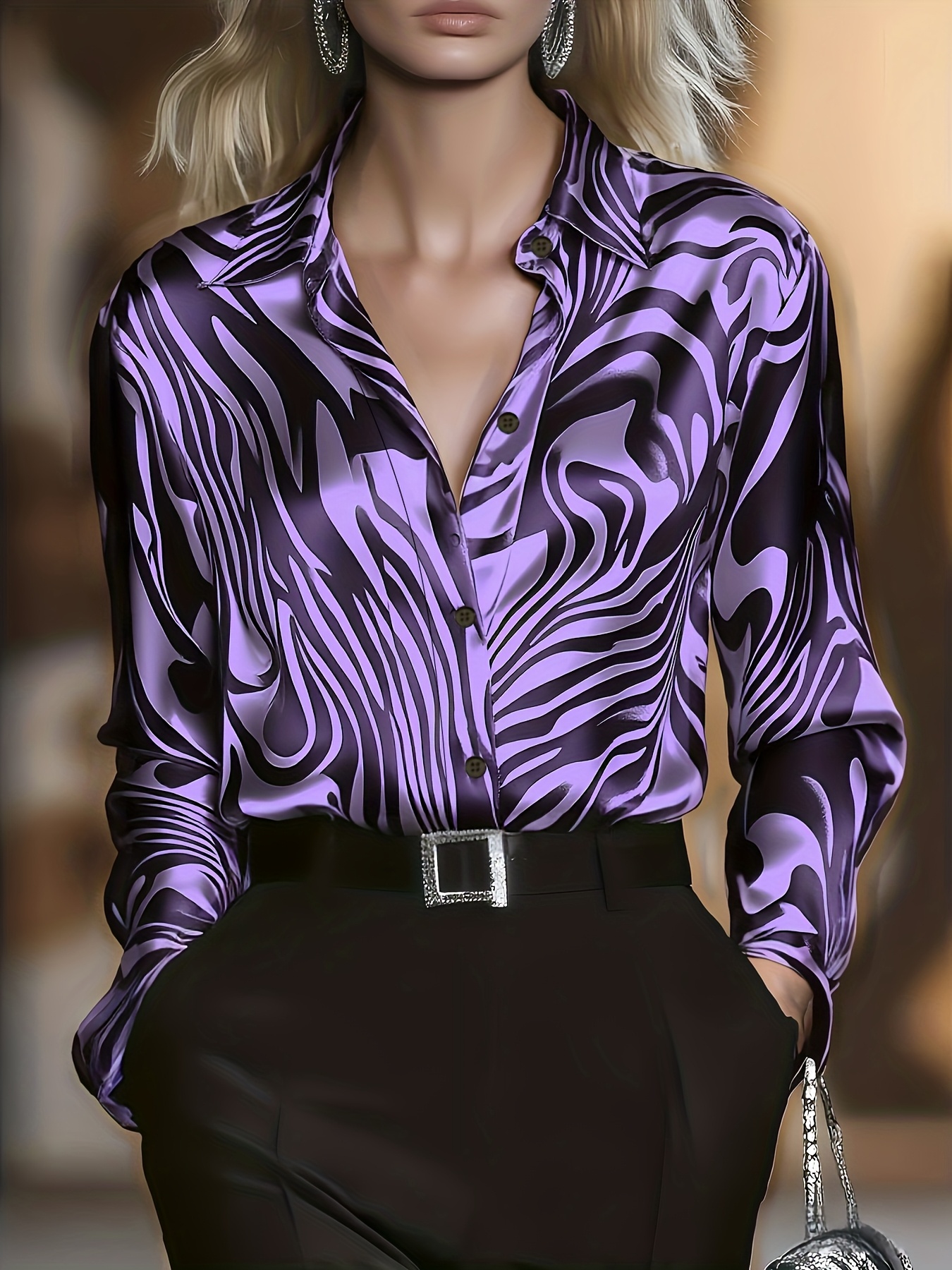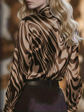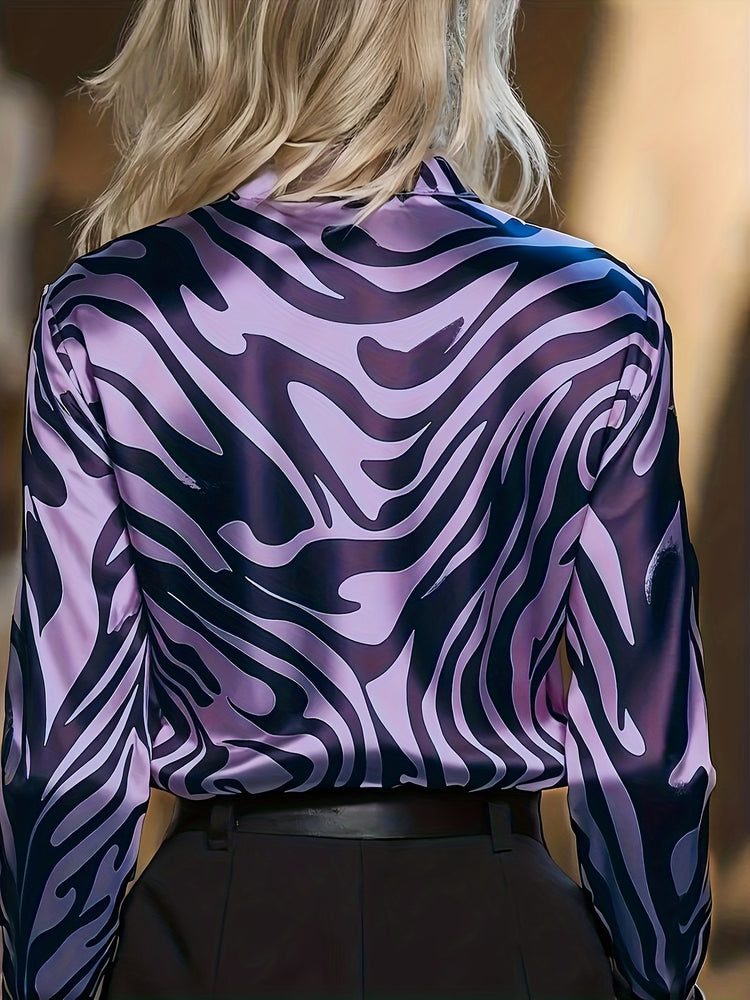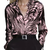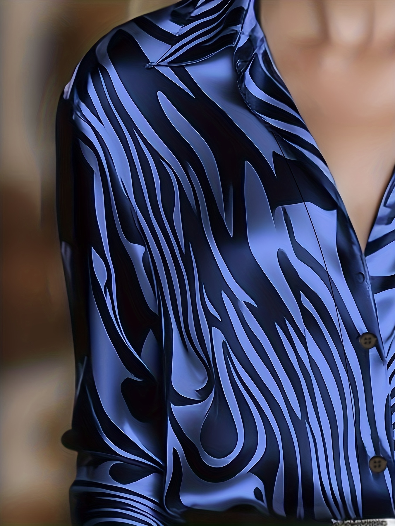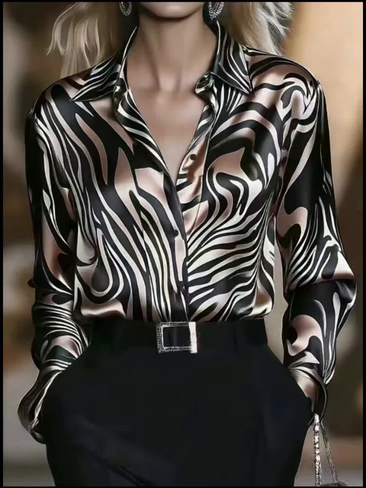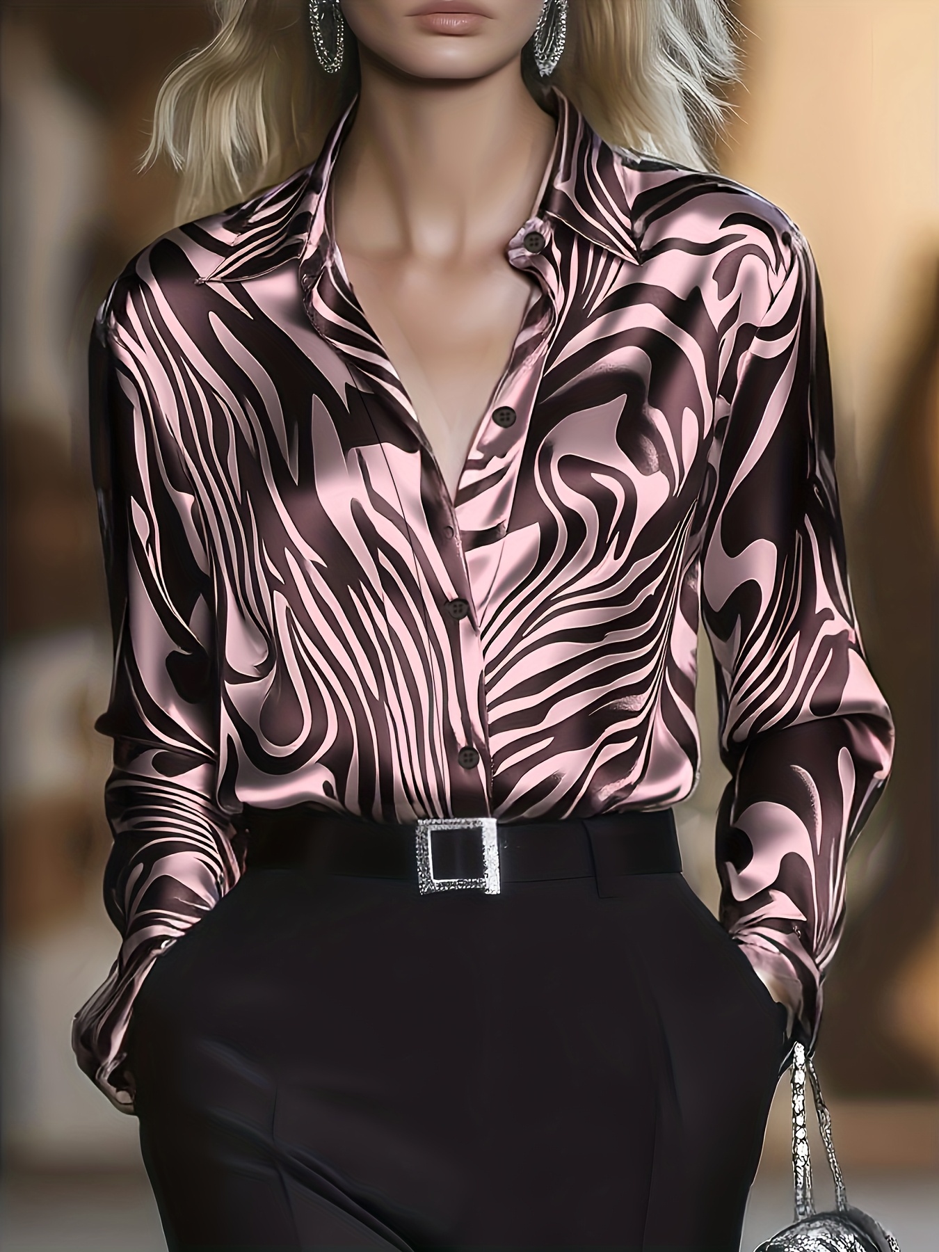 Plus Size, Women's Fashion Satin Zebra Print Shirt, Spring/Autumn New Elegant Plus Size Long Sleeve Top, Loose Fit for All Seasons, Suitable for Daily Outings and Wear