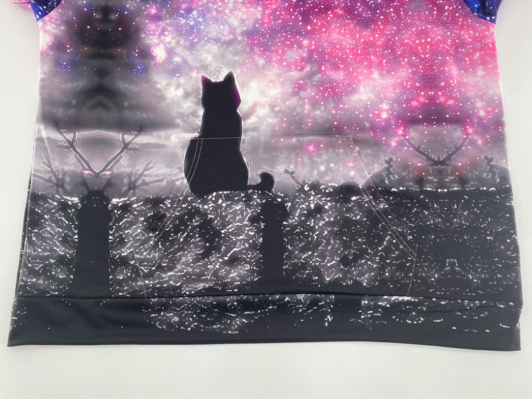 Plus Size Women's Hooded Sweatshirt Star Cat Print Hooded Sweatshirt, with Flap Pocket Pantss