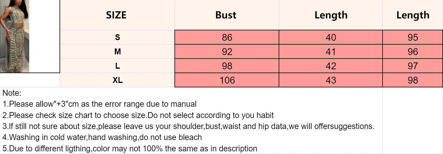 Sexy Denim Two Piece Set Women - Distressed Crop Top & Long Slit Skirt Stretchy Y2K Streetwear Summer Outfit