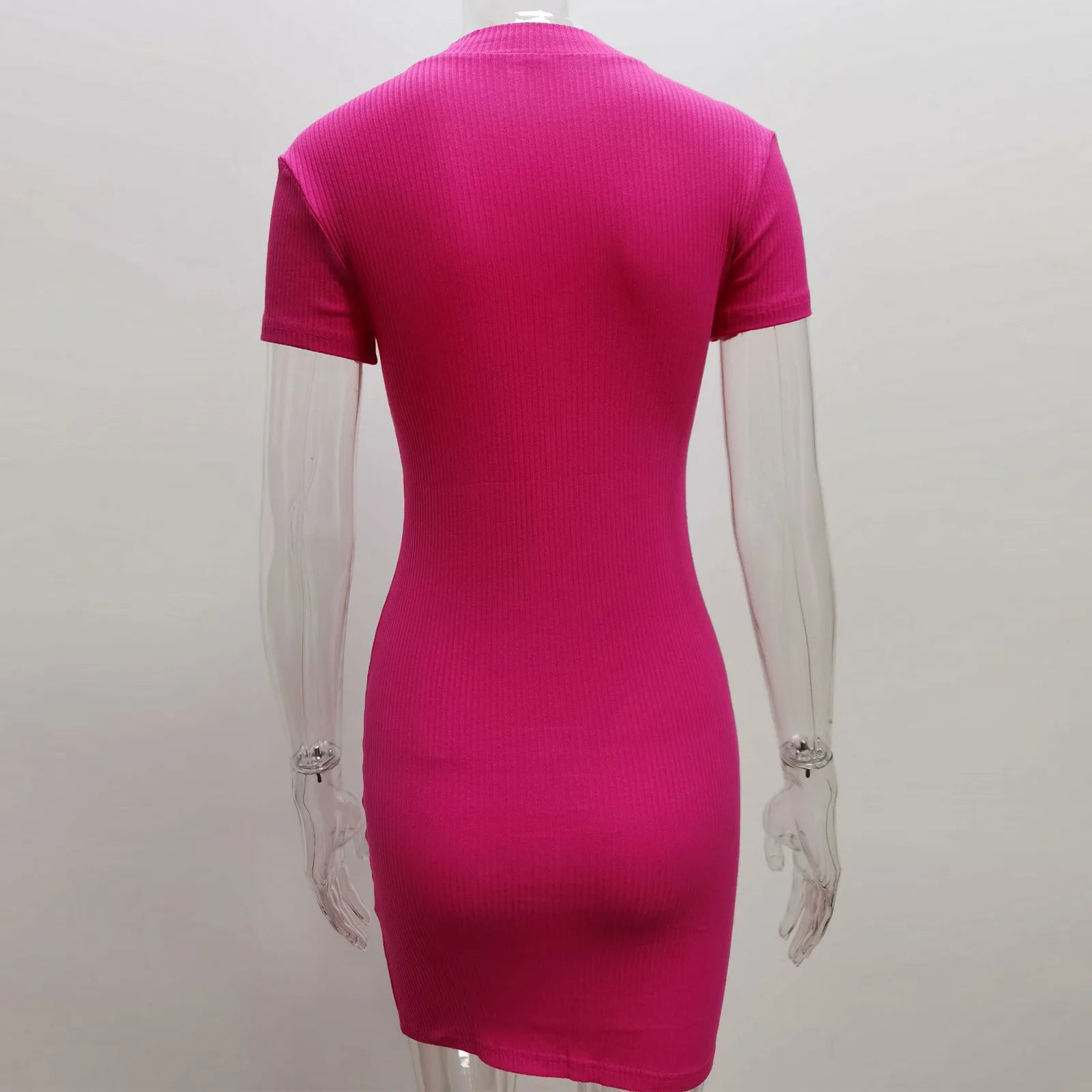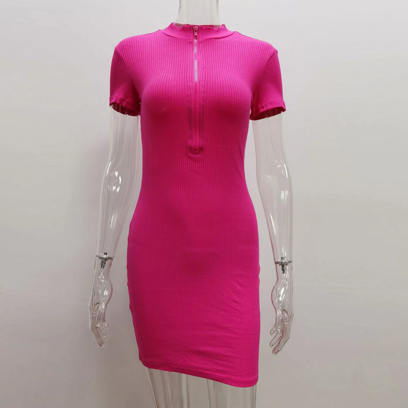 High Neck Short Sleeved Dress, Women's Zipper Dress