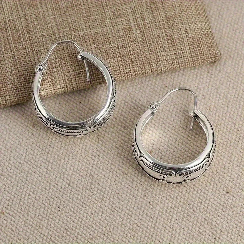 Simple Party Vintage Metal Carved Hoop Earrings, Personalized Festive Earrings