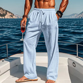 Spring and summer new men's solid-color cotton and linen casual long pants, Hawaiian beach loose sports and breathable street pa