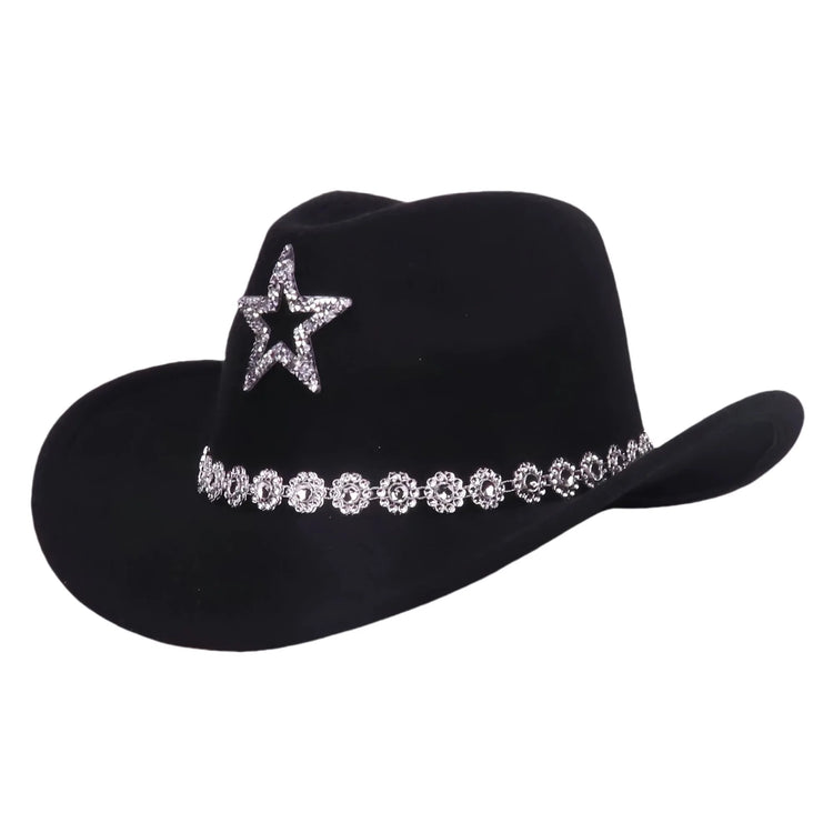 Western Cowgirl Hats for Women and Men Fashionable Wide Brim Sequin Fedora Caps for Daily Life