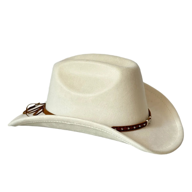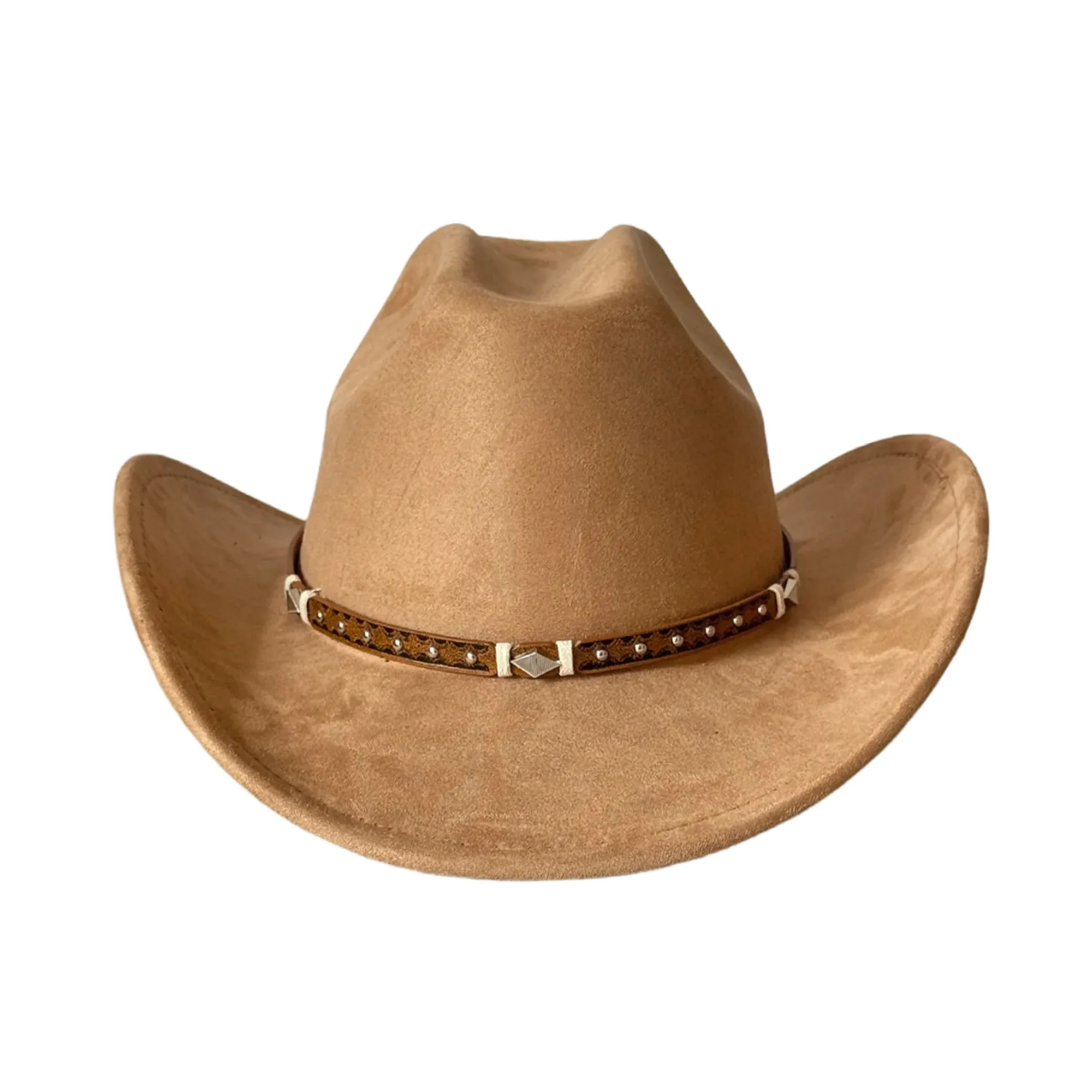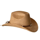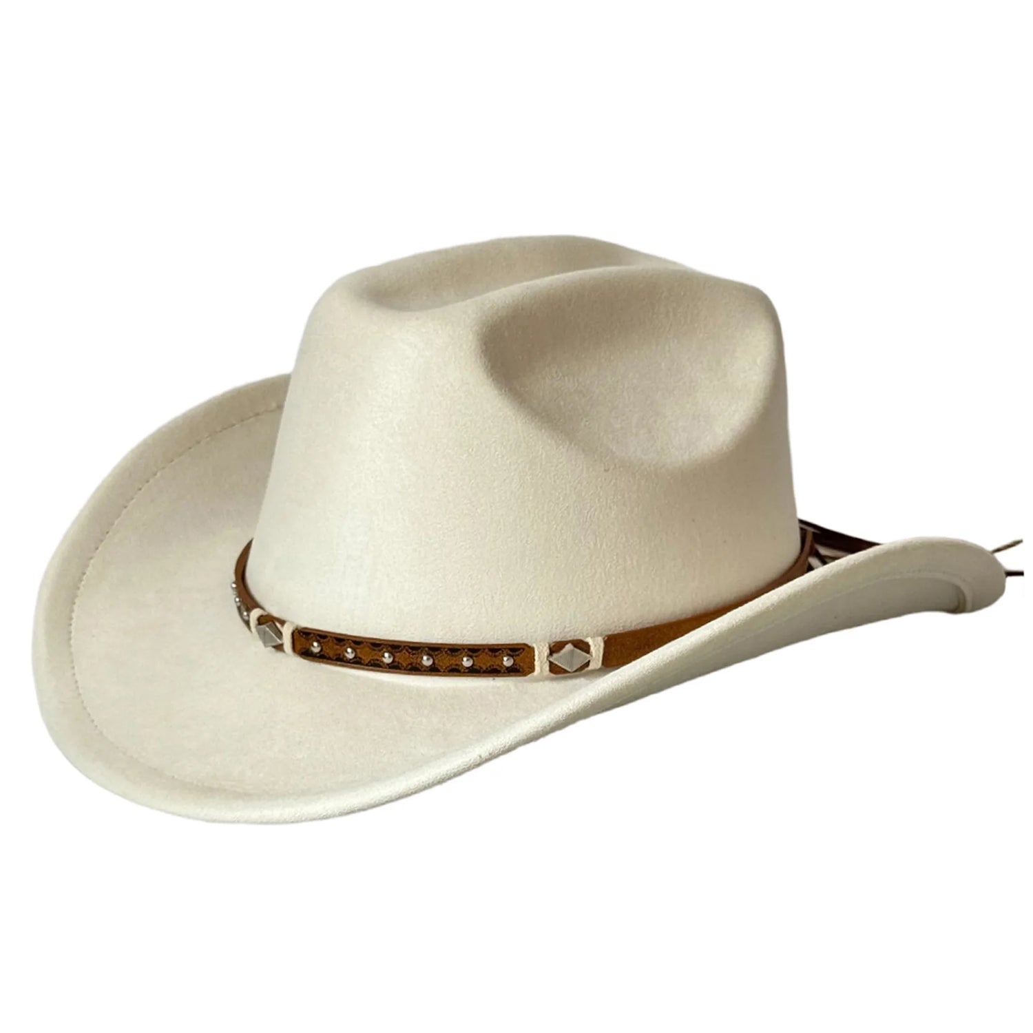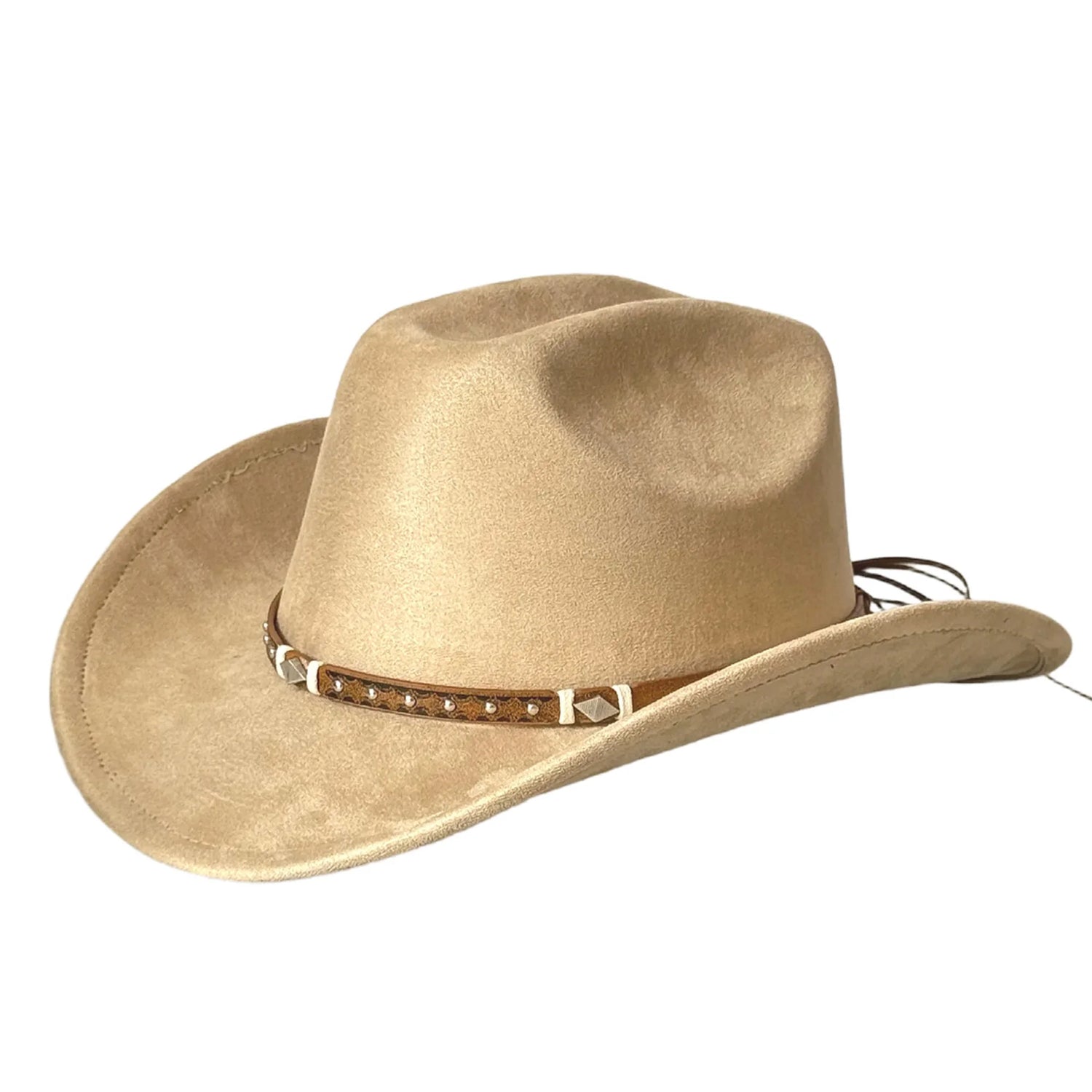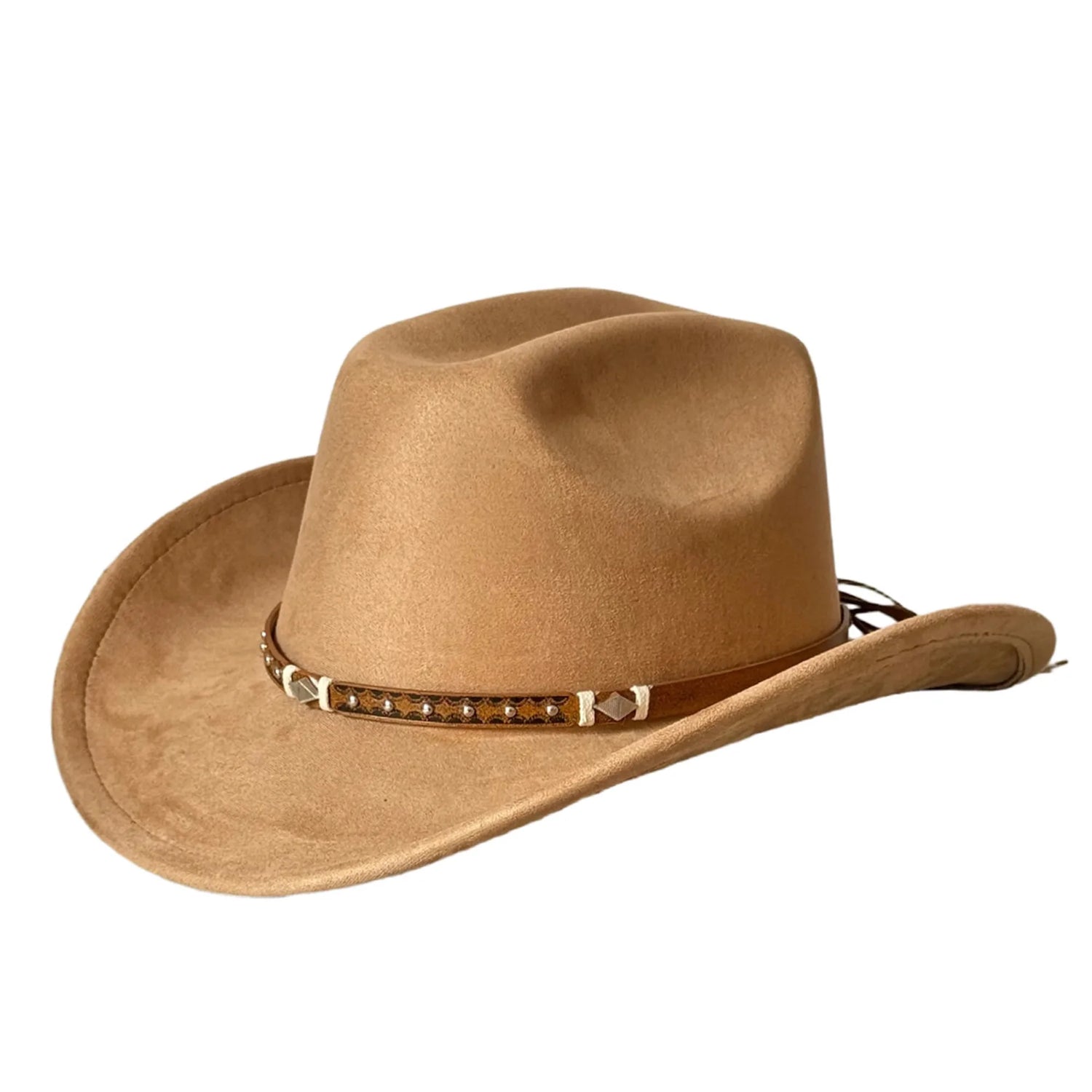 Stylish Unisex Cowboy Hats with Embellished Band Trendy Wide Brim Fedora Caps for Stylish Outdoor Adventures and Travel