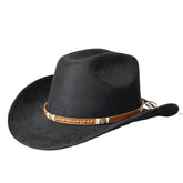 Unisex Western Cowgirl Hats with Decorative Belt Fashionable Wide Brim Fedora Caps for Outdoor Travel
