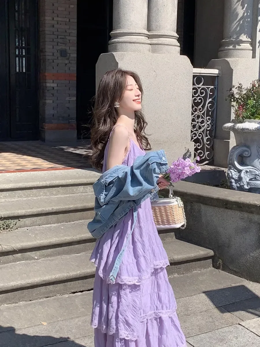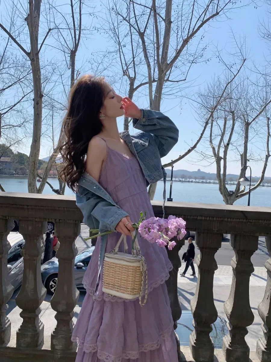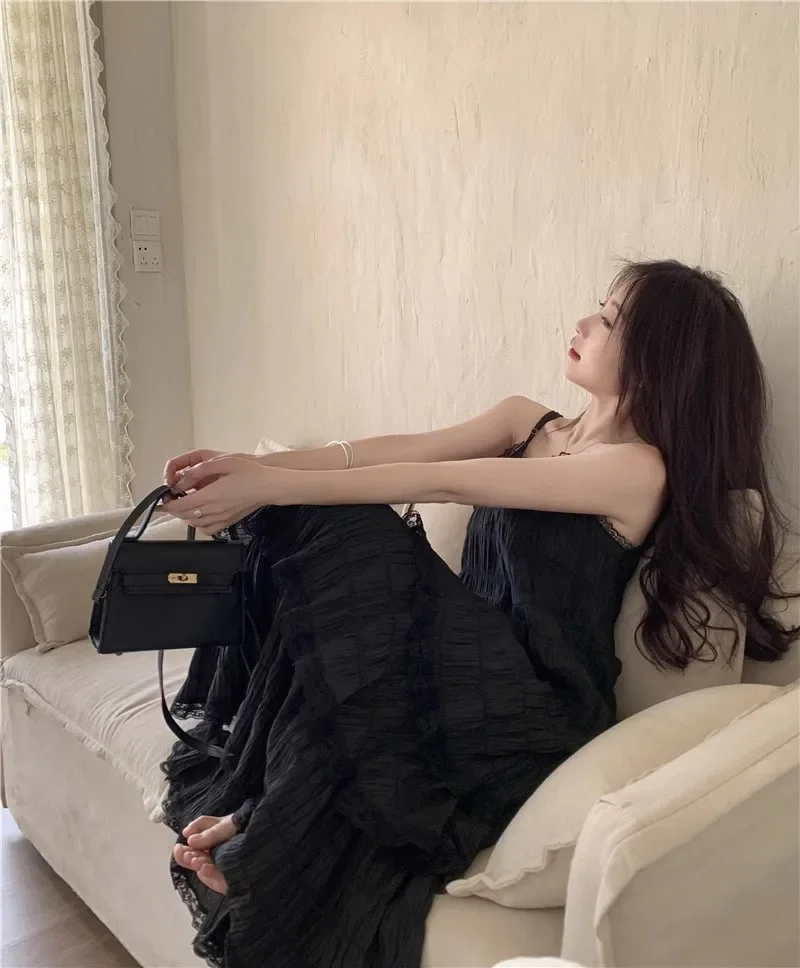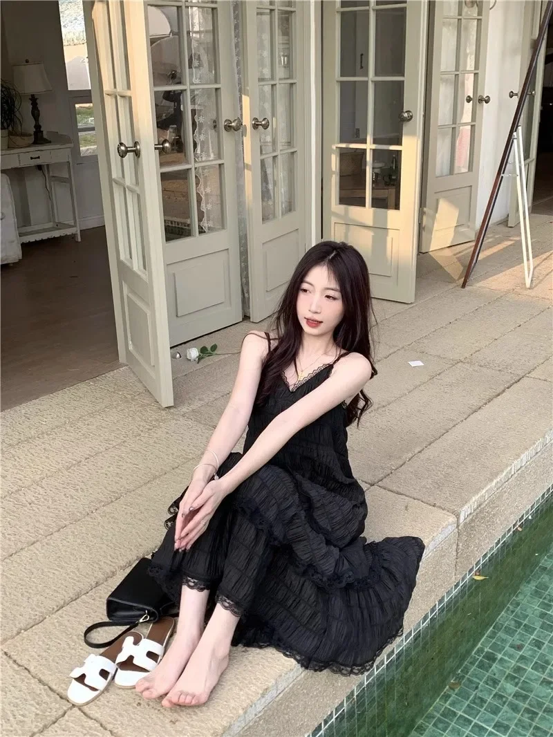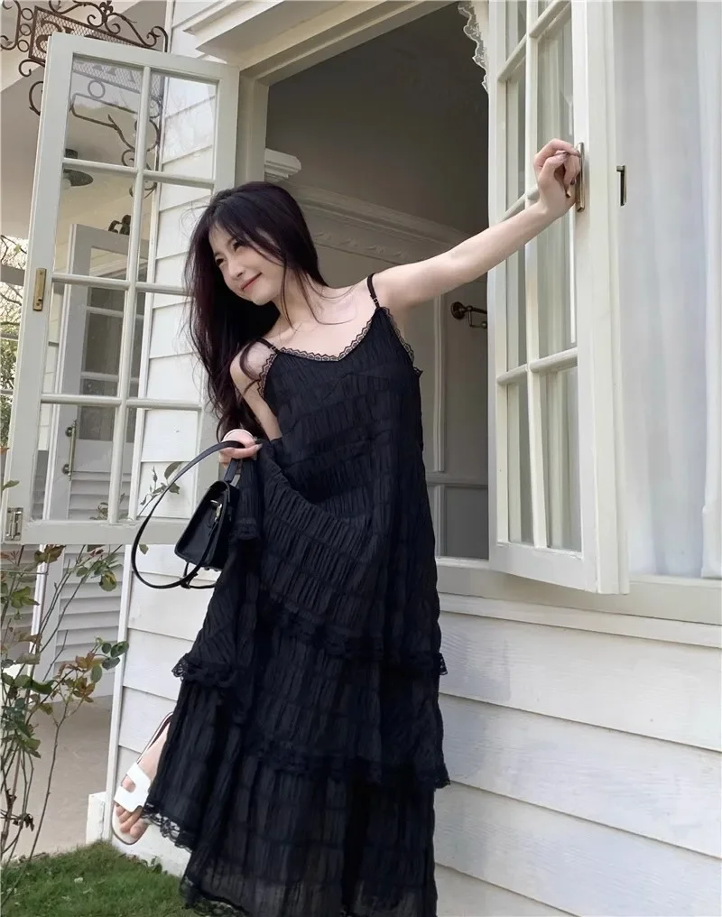 Summer Long Vintage Casual Ruffles Elegant Maxi Strap Camis Silky Beach Lace Elegant Party Dress Vestidos Sexy Women