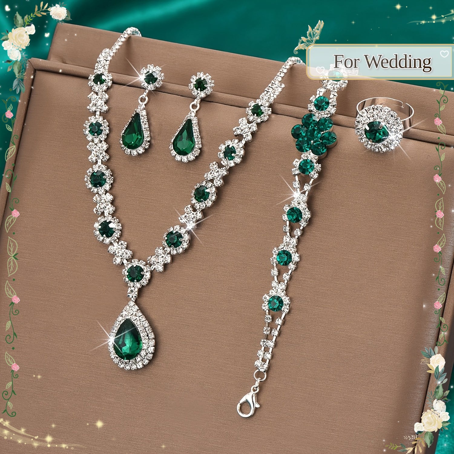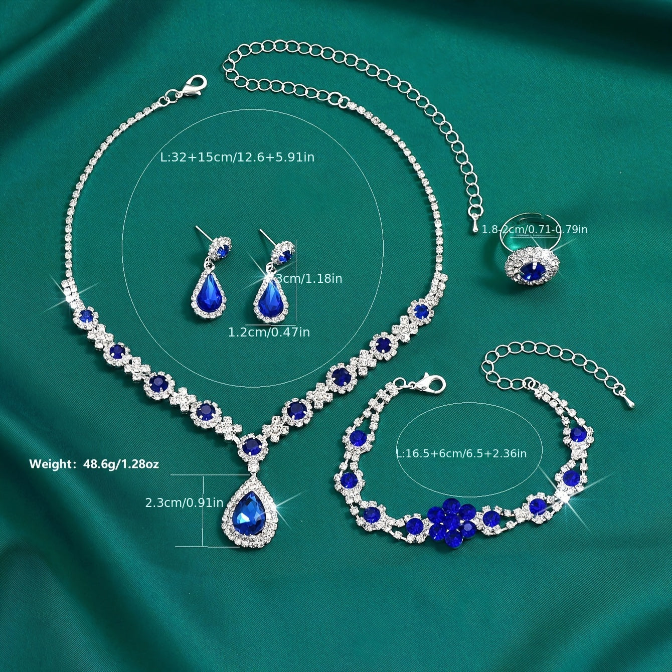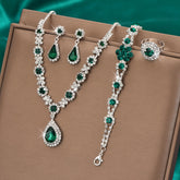 [Teardrop Jewelry Set] A Luxurious 4pcs Set Featuring a Teardrop Necklace, Earrings, Bracelet, And Ring, Perfect for Women's Jewelry, Suitable for Wedding Accessories, Parties, And Valentine's Day Gifts.
