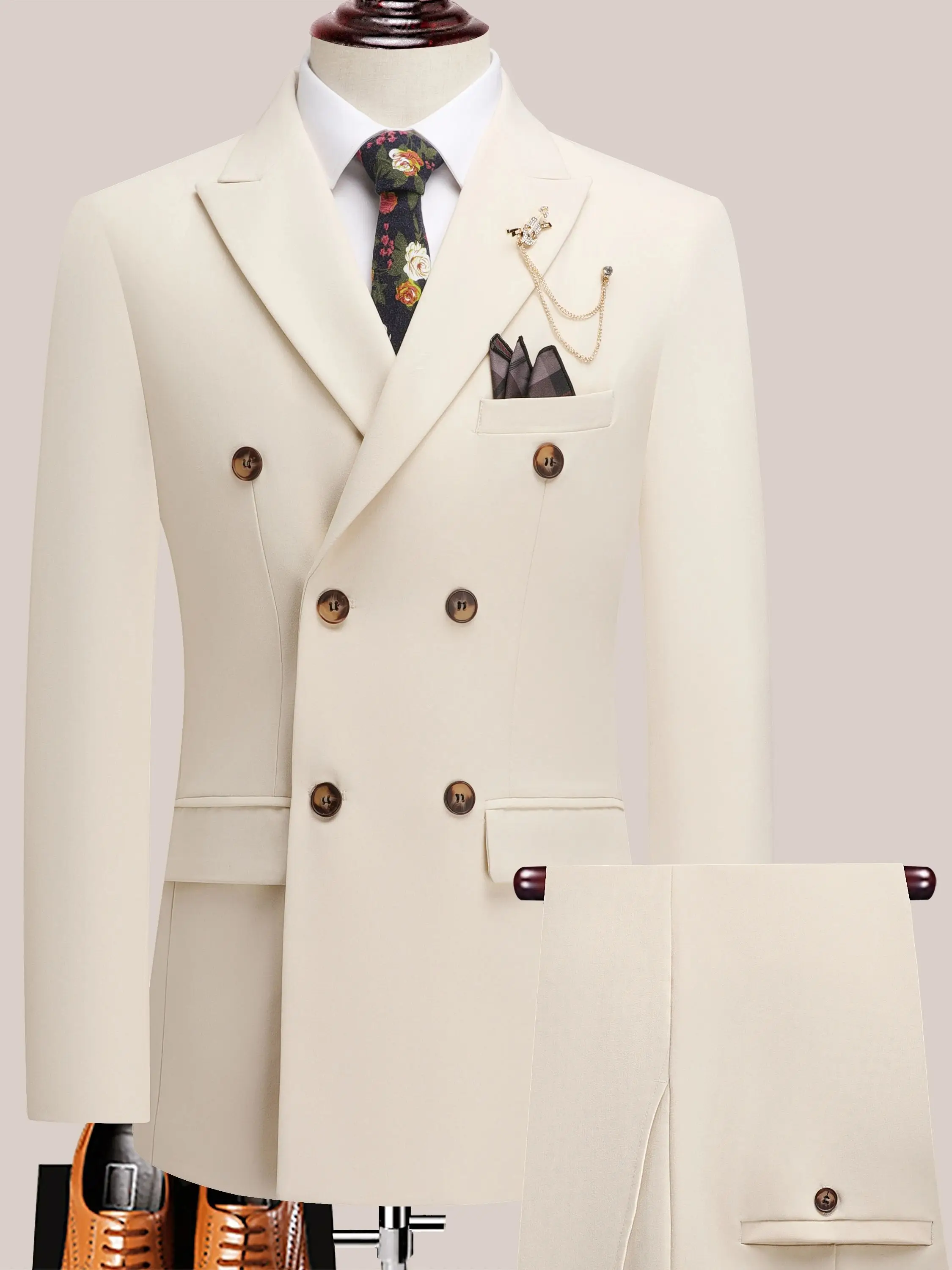 The latest men's solid color suit two-piece set with lapel collar and double breasted buttons for four seasons, men's business s