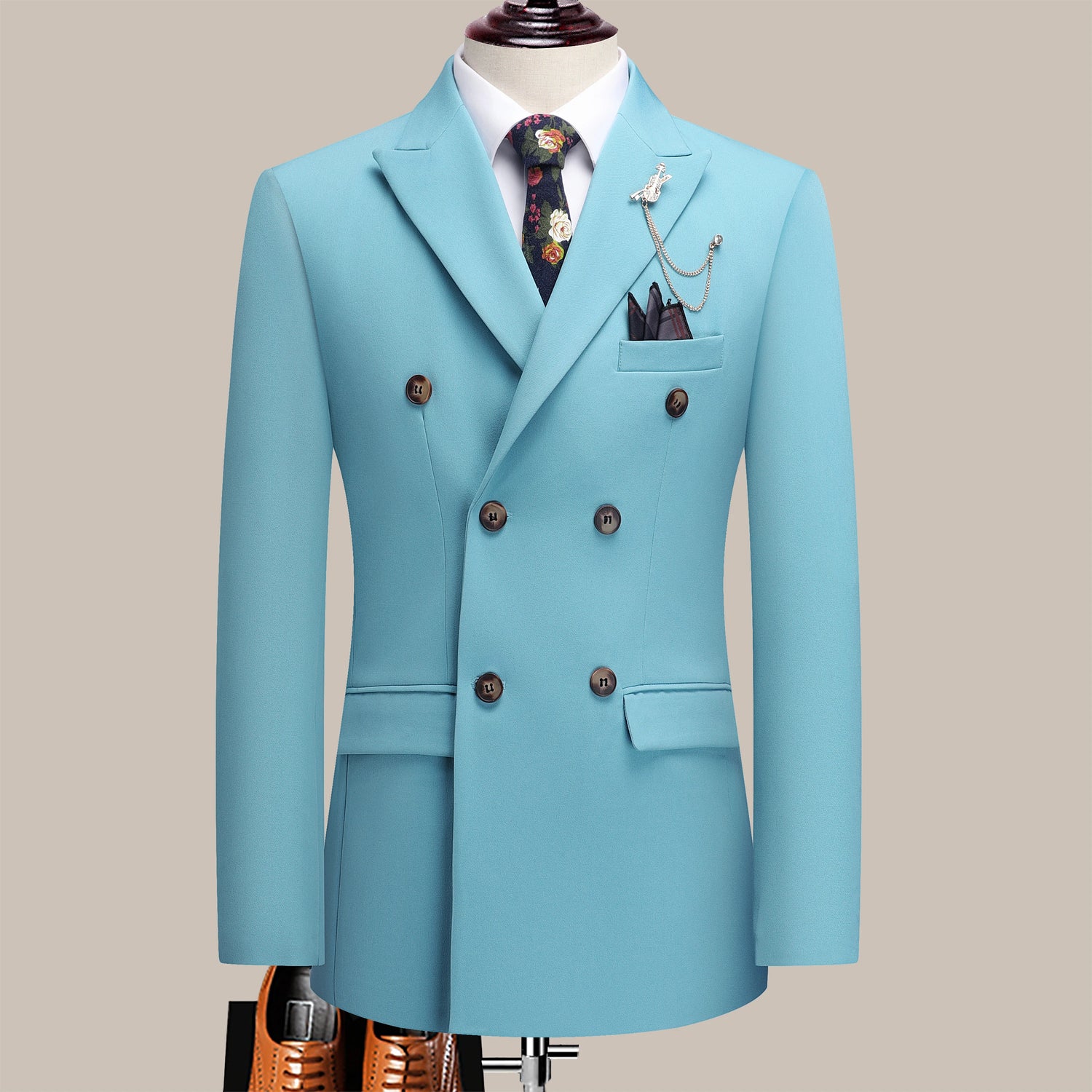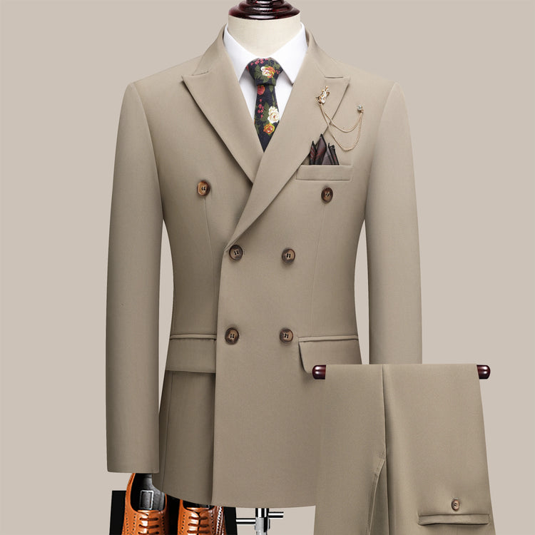 The latest men's solid color suit two-piece set with lapel collar and double breasted buttons for four seasons, men's business s