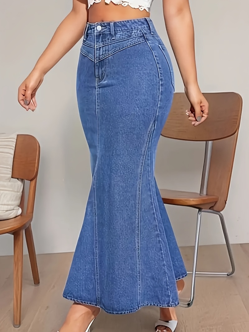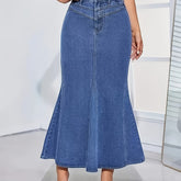Trendy Women'S Fishtail Skirt in a Washed Blue High Waist Stretch Design