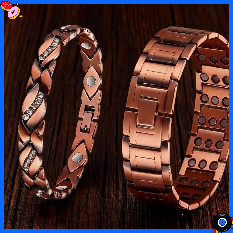 Two Adjustable Magnetic Copper Bracelets - Ideal for Couples, Great for Father'S Day, Mother'S Day, And Other Holiday Celebrations - Also Makes a Wonderful Gift for Couples