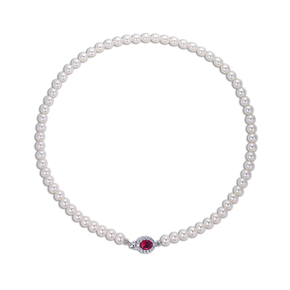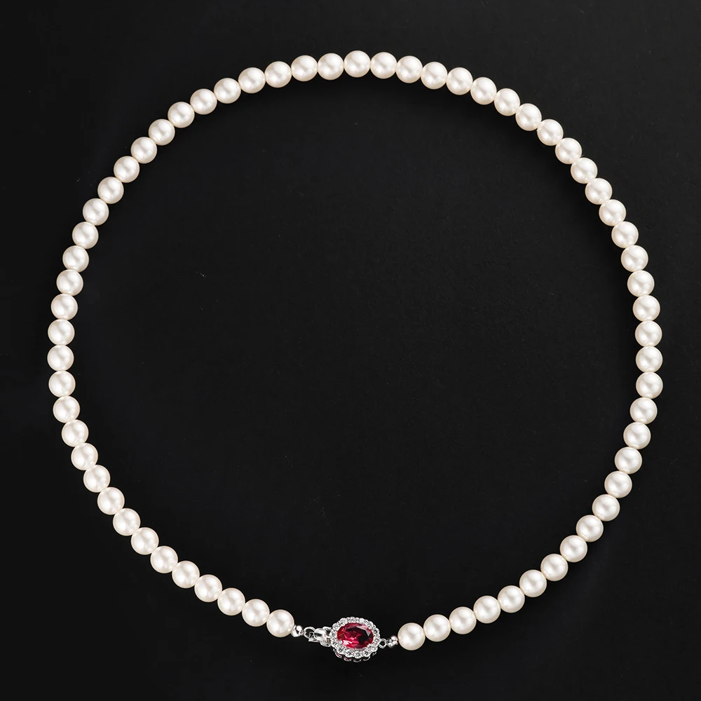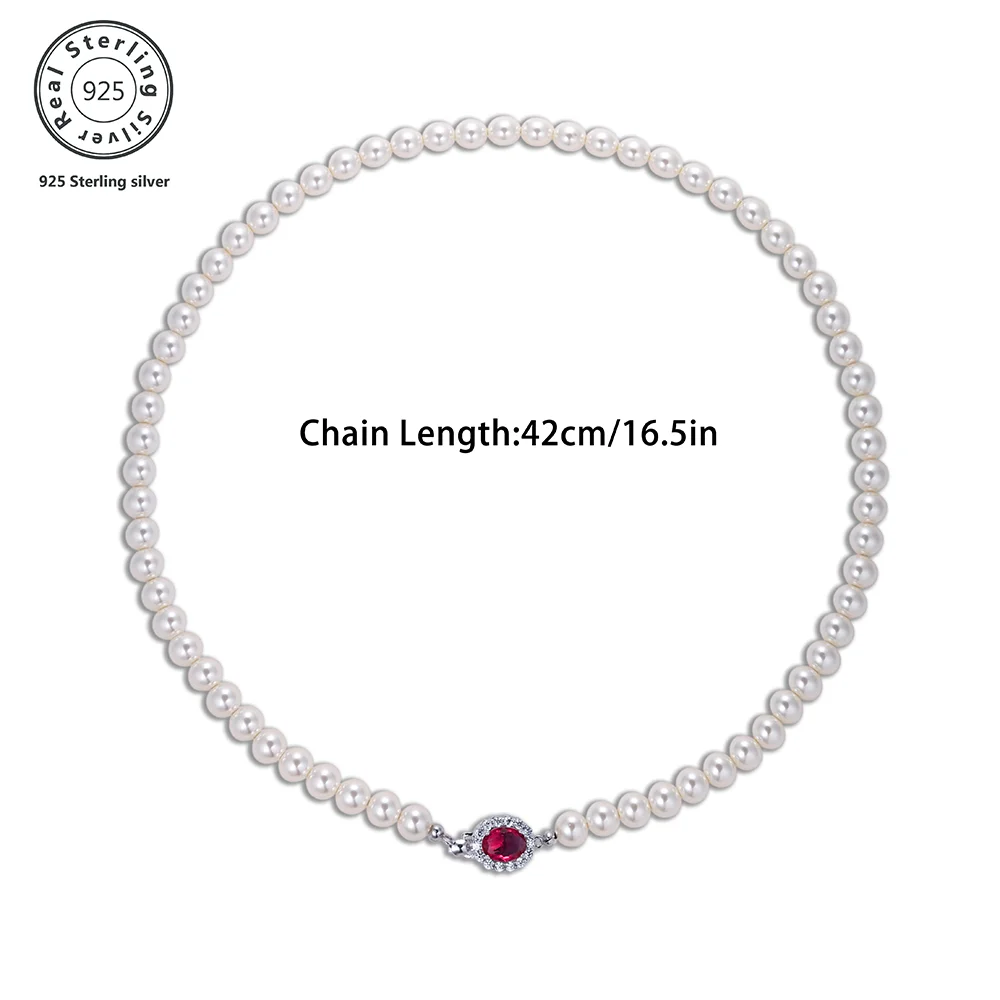 Vintage Red Shiny Crystal Pearl Necklace for Women Light Luxury S925 Sterling Silver Banquet Collarbone Sweater Chain USA Stock