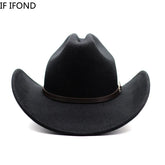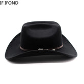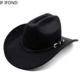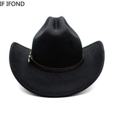 Vintage Western Cowboy Hat For Men's Gentleman Lady Jazz Cowgirl With Leather Wide Brim Cloche Church Sombrero Hombre Caps