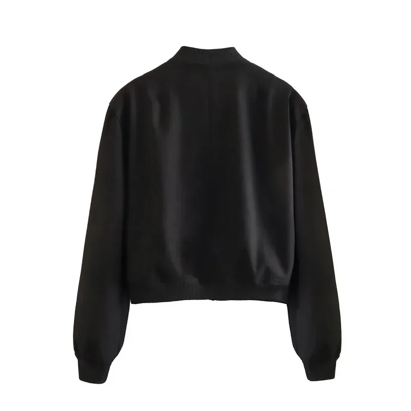 Woman Bomber Jacket Coat White Autumn Winter Button Baseball Aviator Cropped Jackets for Women Long Sleeve Crop Outerwear
