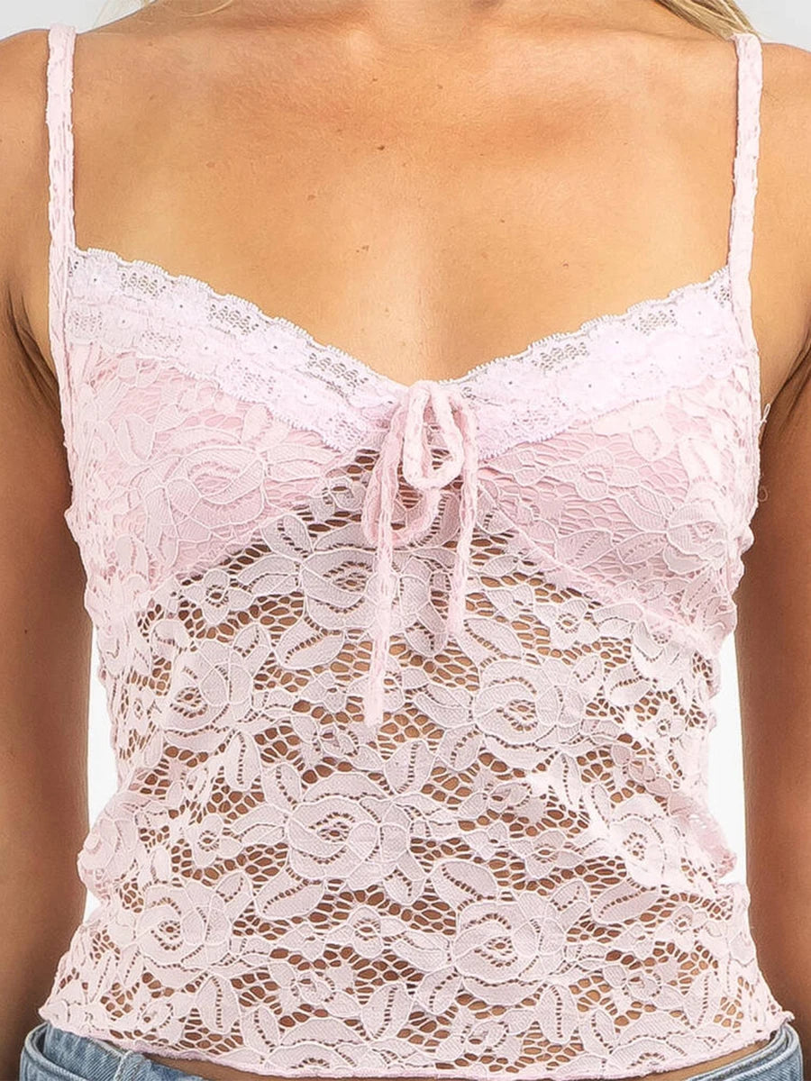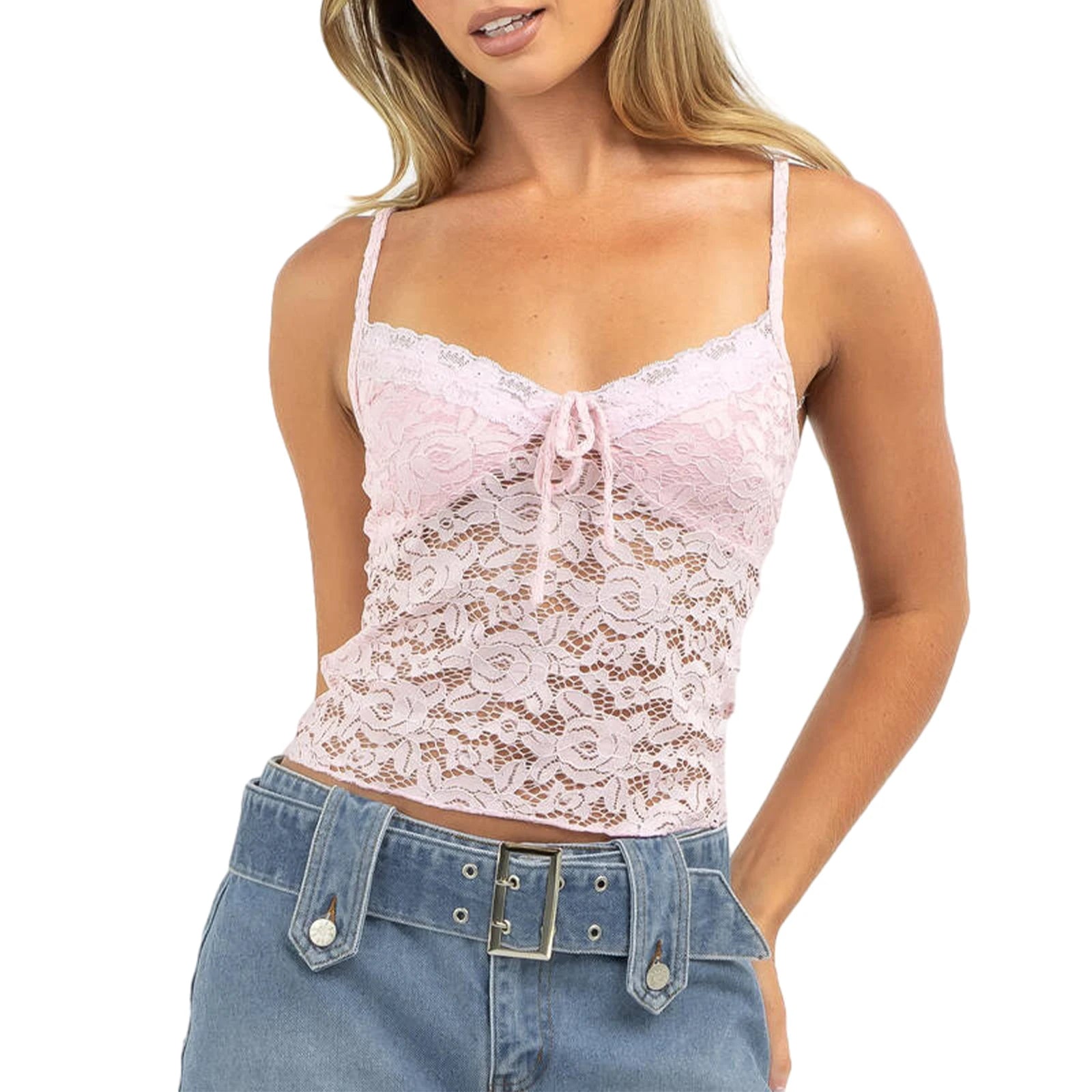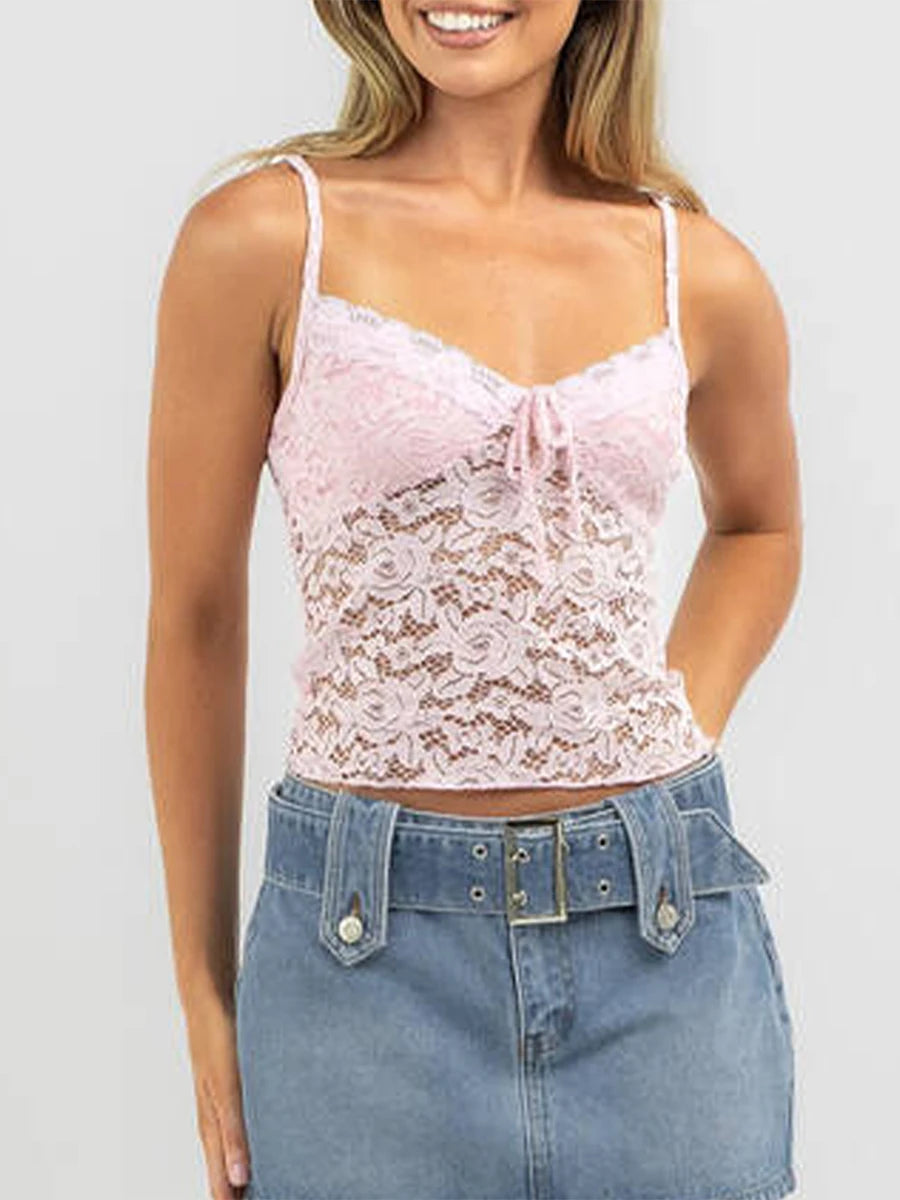 Women Eyelet Lace Camisoles Spaghetti Strap Cami Tops Sleeveless Backless Tank Tops Summer Vests Tops Streetwear