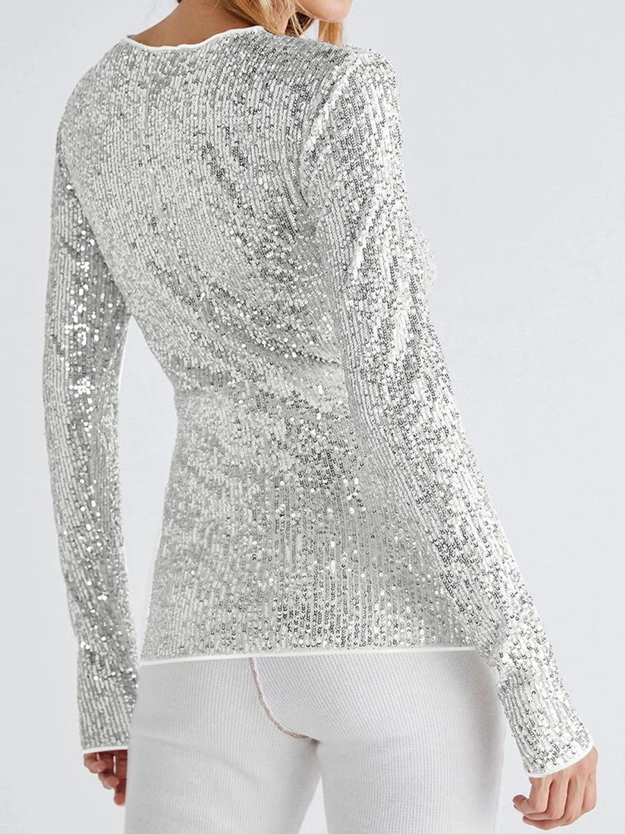 Women Long Sleeve Tops Sequins Basic Shirt Casual Pullover for Fall Club Streetwear Aesthetic Clothes