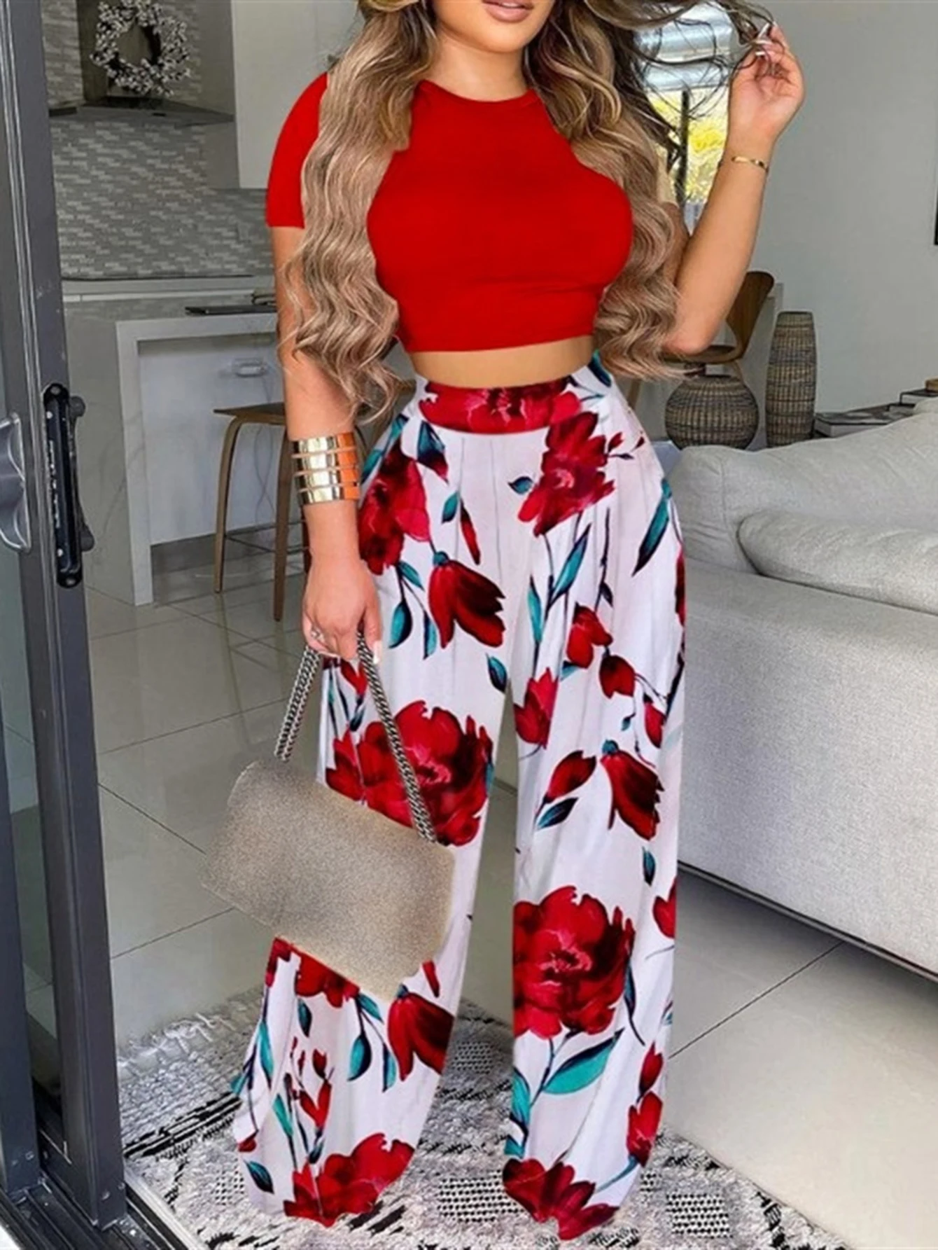 Women Lounge Set Printed Casual Loungewear Set Polyester Blend for Summer Red XXXL