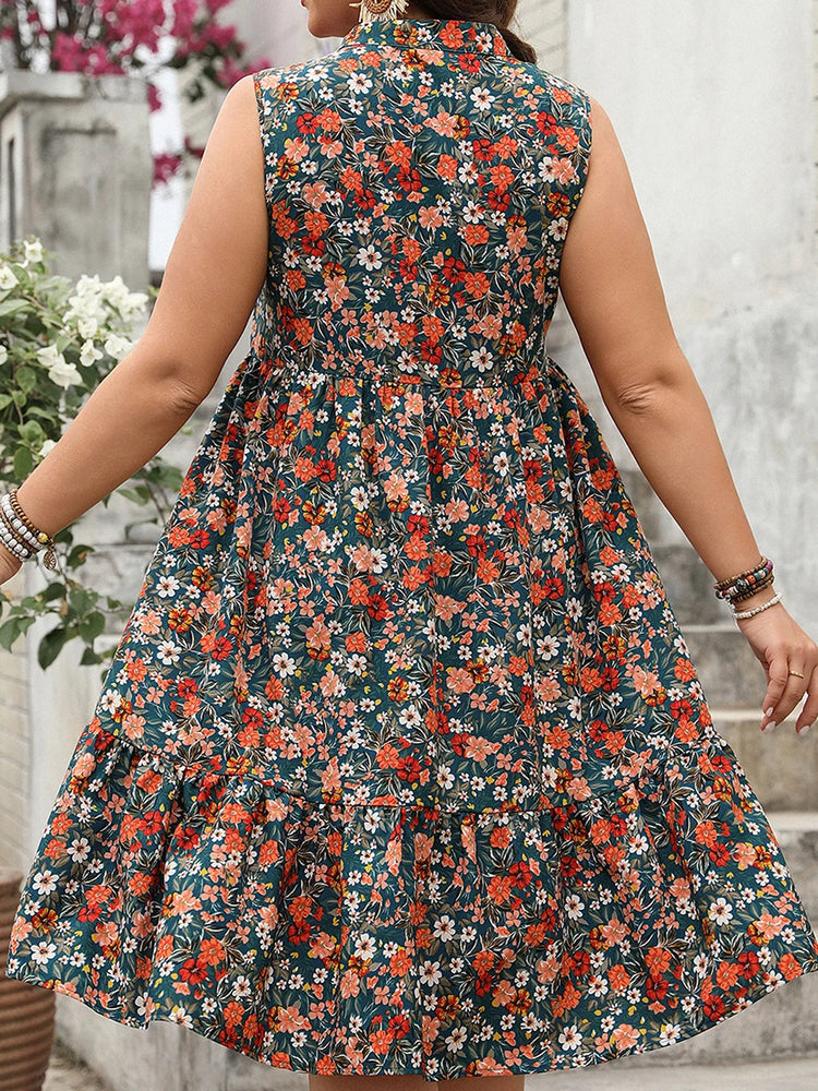 Women Plus Size Dress Floral Print V-Neck Sleeveless Casual Dress Summer Casual A-line Dress