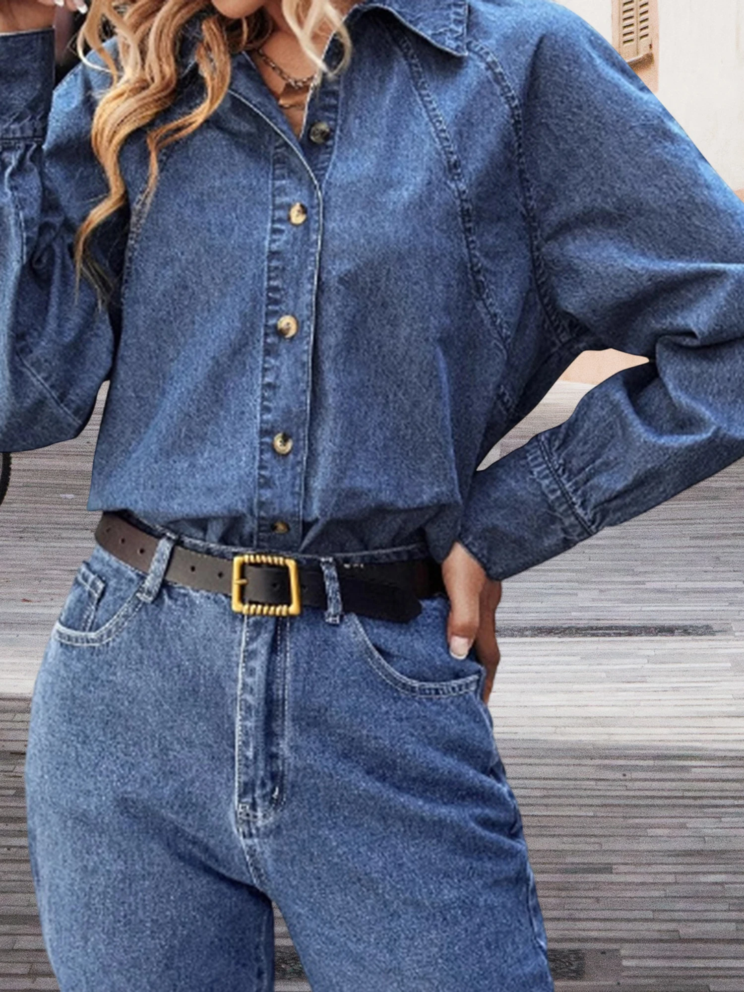 Women Denim Jacket, Long Sleeve Turn-down Collar Button Closure Solid Fall Jacket Streetwear